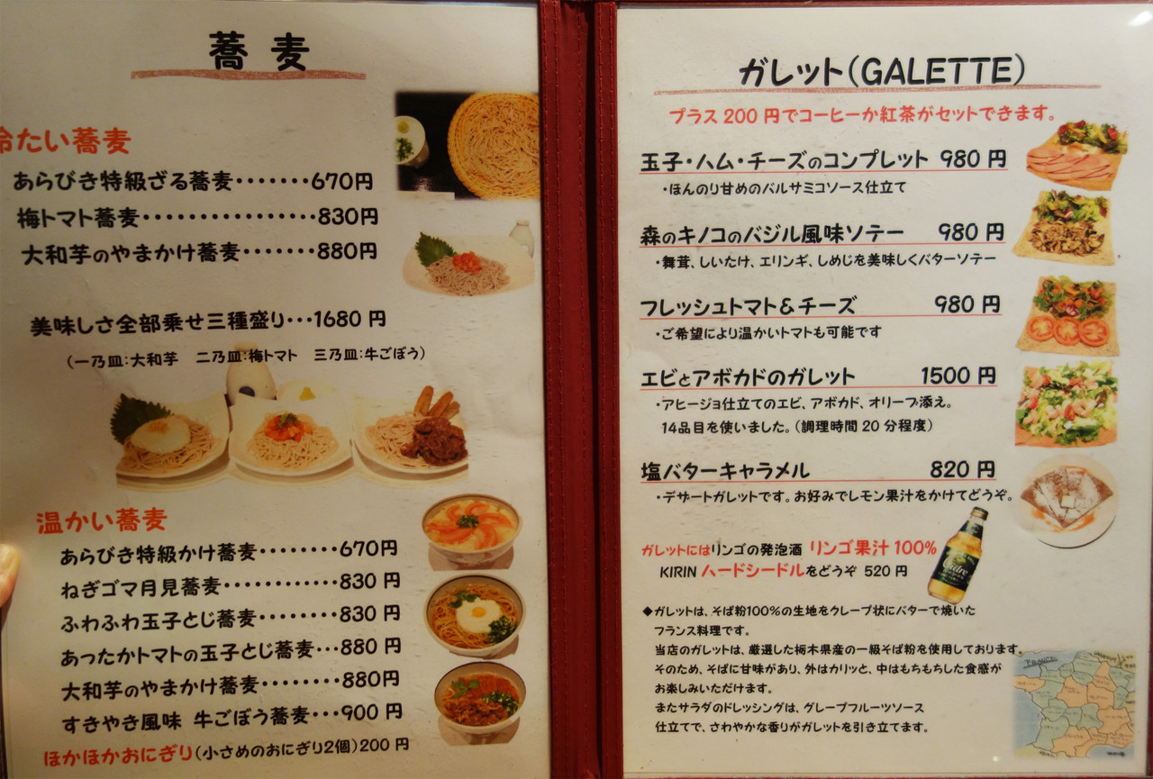 以下、ランチセット・蕎麦各種・ガレットのメニューです。