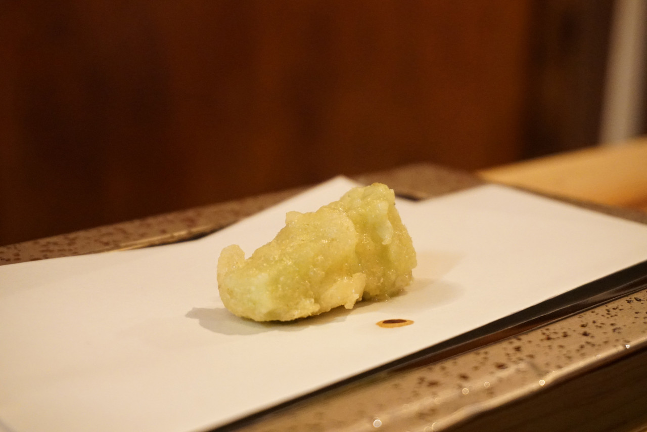 まずは、本日のおすすめ天ぷらメニューの中から、春の山菜・ふきのとうを頂きました。