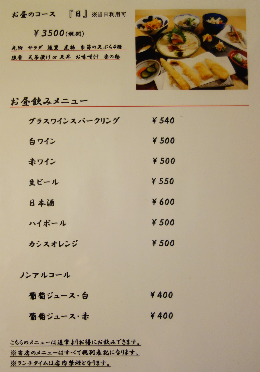 天ぷら以外のメニューも色々あります。