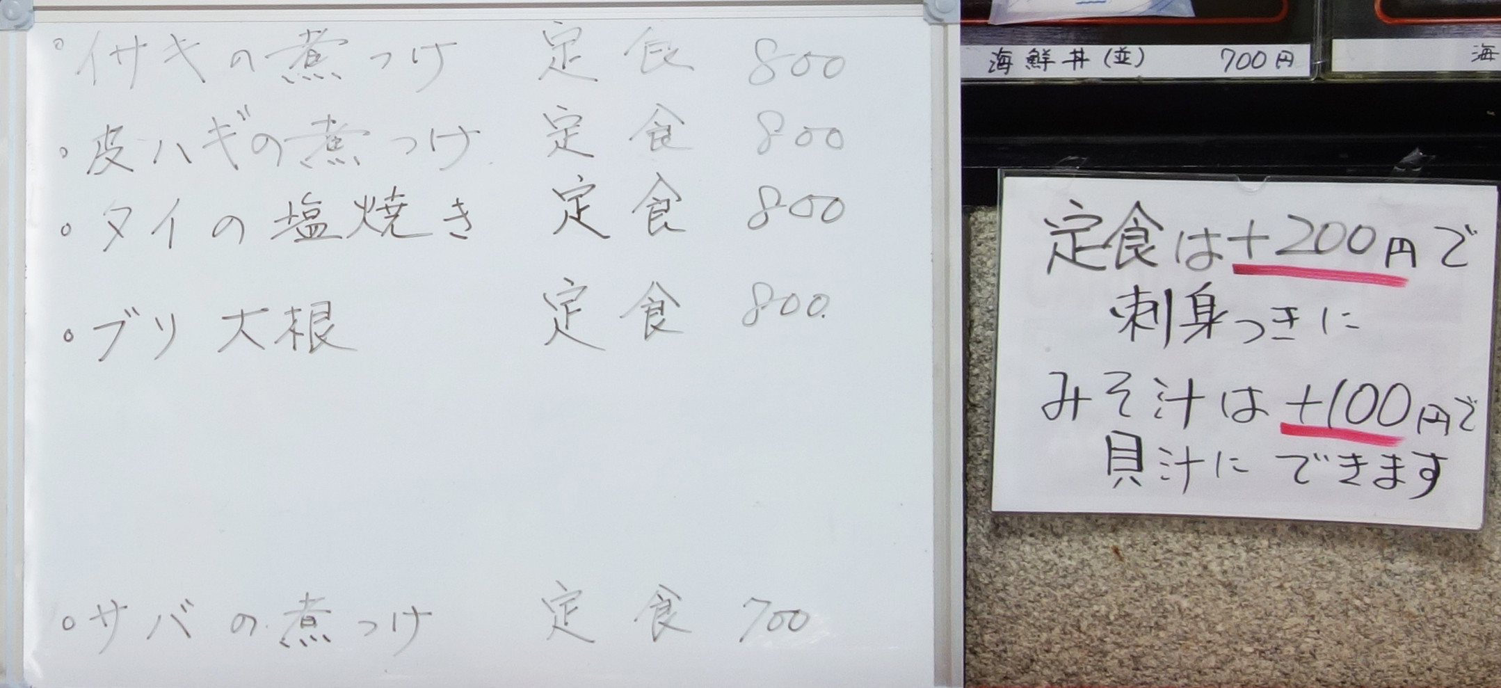 お魚以外の定食メニューを置いているお店もありますし、中華食堂もあります。