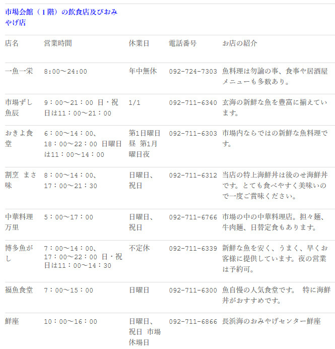 【住所】福岡県福岡市中央区長浜3-11-3 鮮魚市場市場会館1F