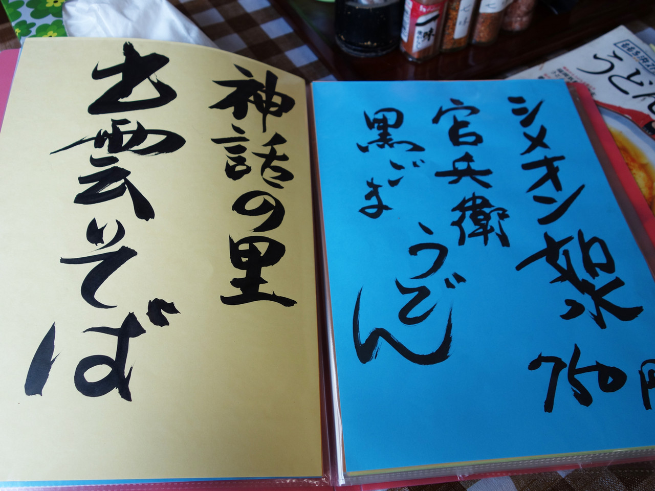 こちらは、卓上のメニュー表。