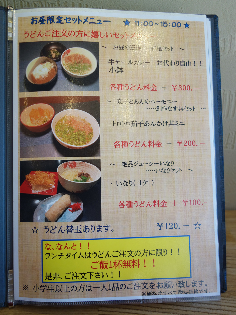うどんメニュー+300円でおかわり自由の牛テールカレーが付くセットがスゴイ!