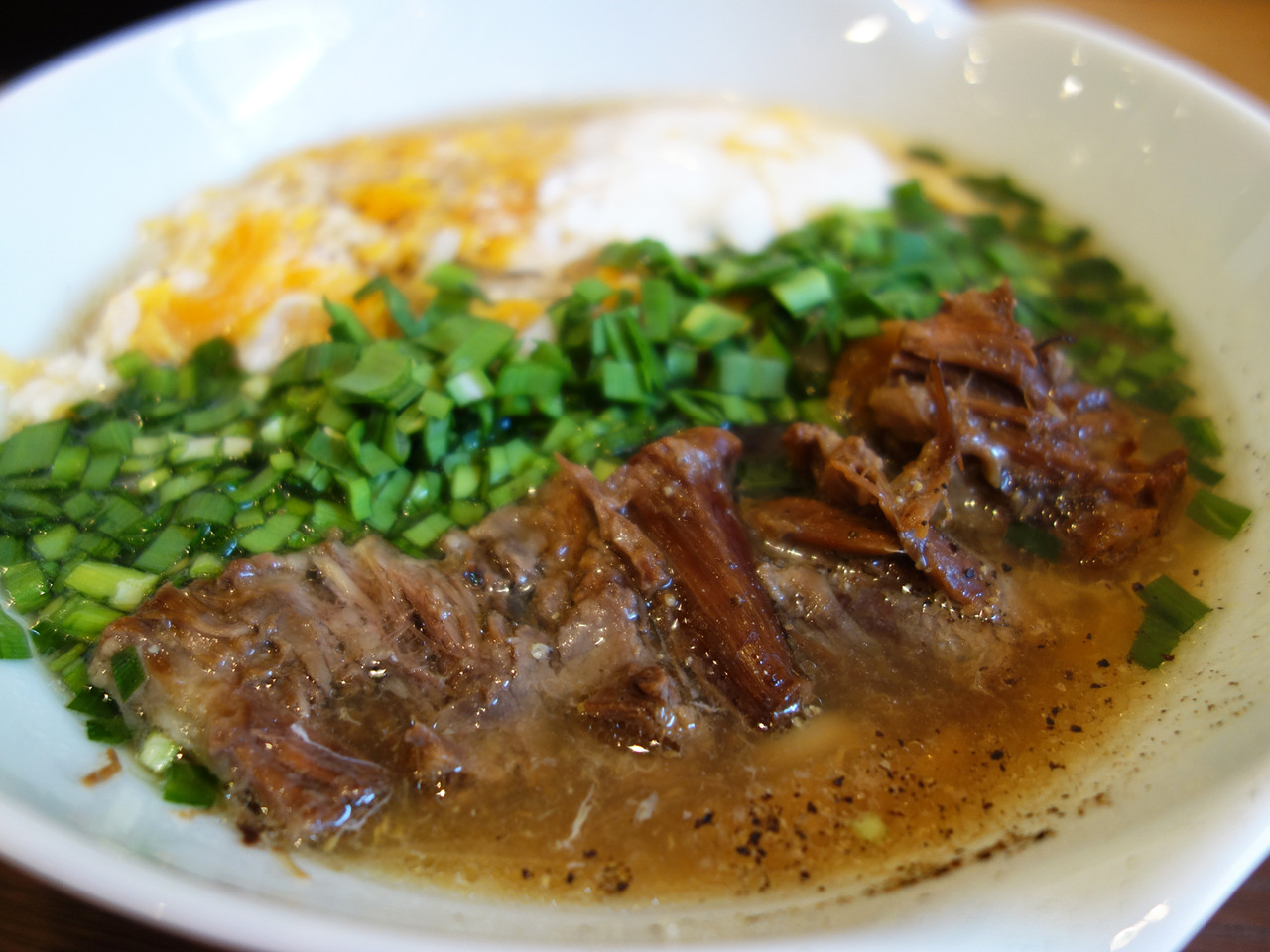 肉じゃが風というのか(笑)、甘濃い醤油味の牛テール肉とスープにもよく合ってました。