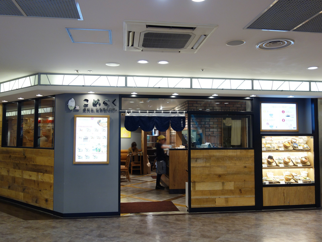 店頭のショーケースには、華やかな海鮮丼やイマドキのカフェ風定食のディスプレイ。