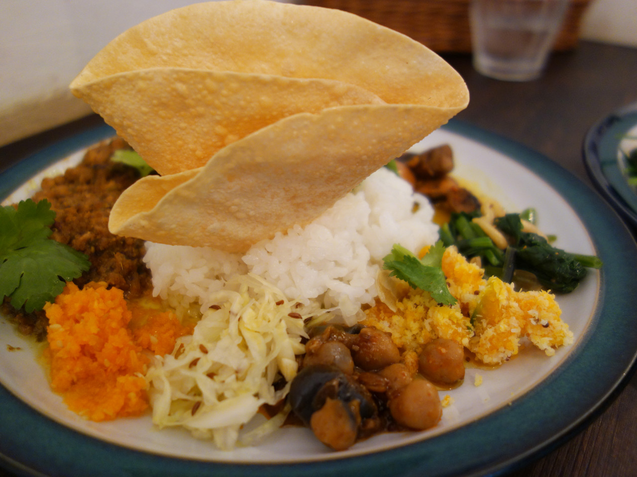 他の小さなおかずは、レンズ豆・マッシュルーム・ほうれん草・カボチャ・ひよこ豆・キャベツ・人参など。