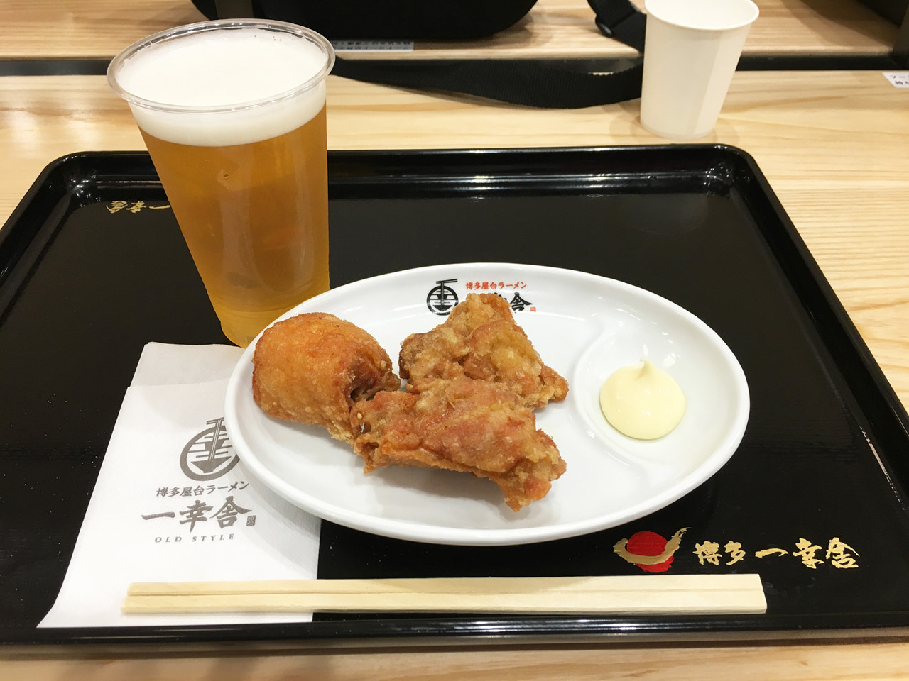 ビールはサントリーのプレミアムモルツ。唐揚げは3切れ。