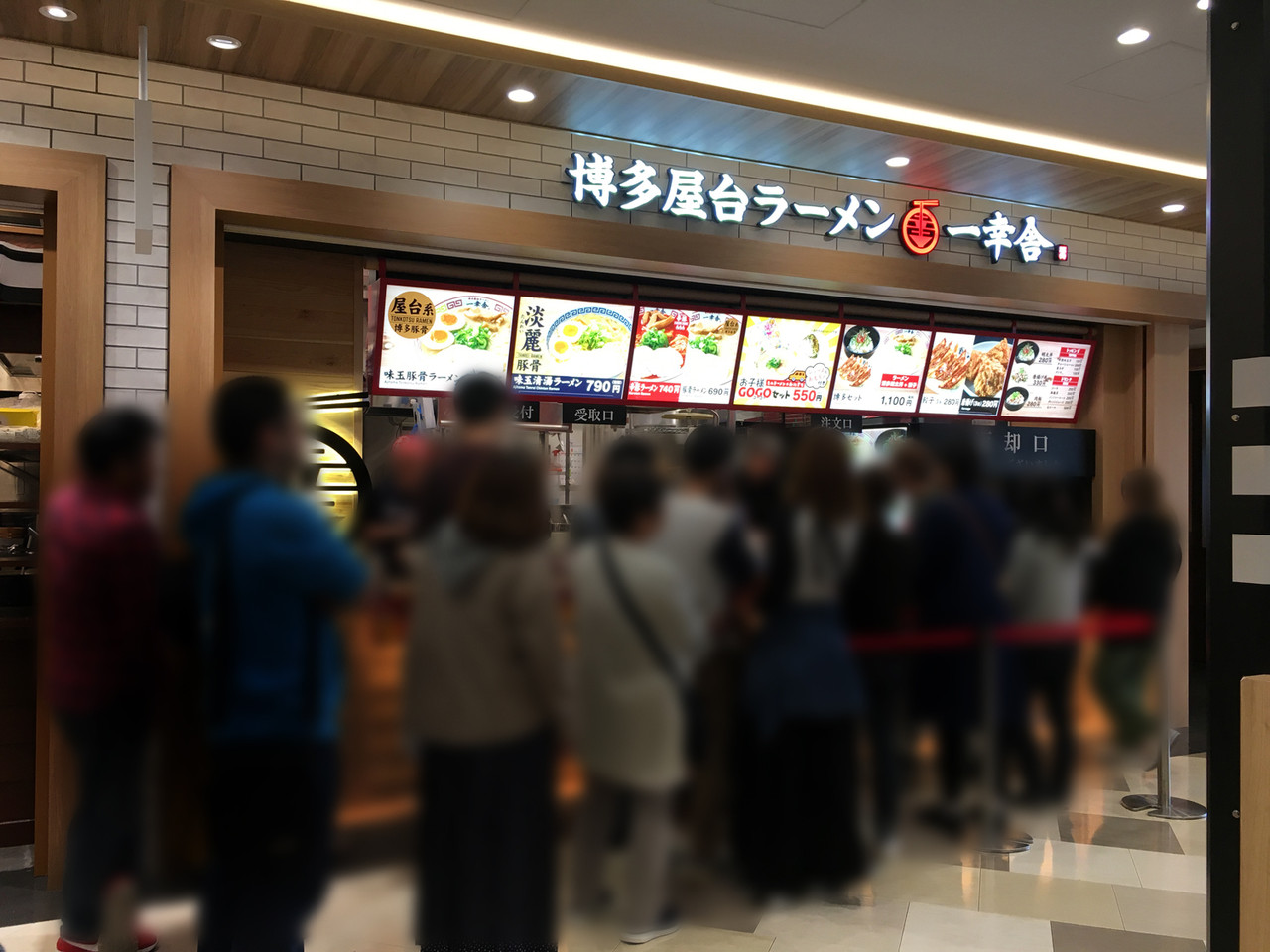 頂いたのは、博多発祥の濃厚豚骨ラーメン店として有名な博多一幸舎のマークイズももち店です。