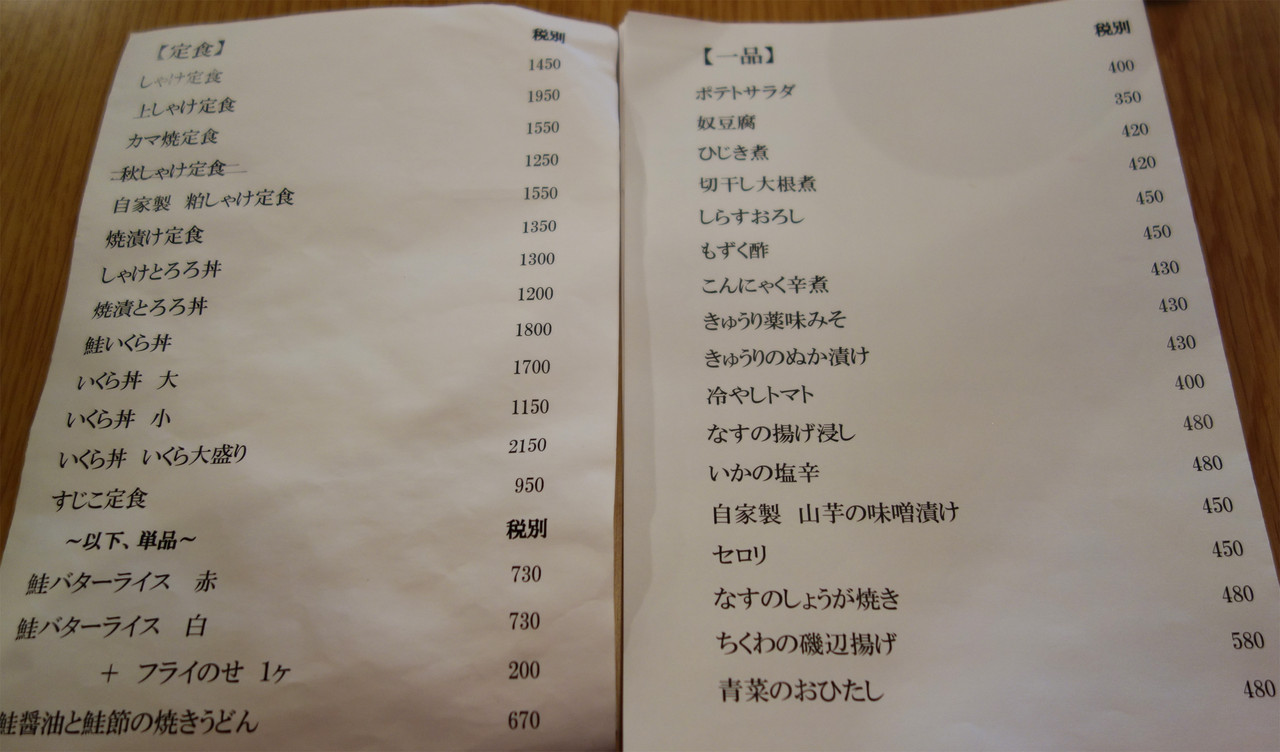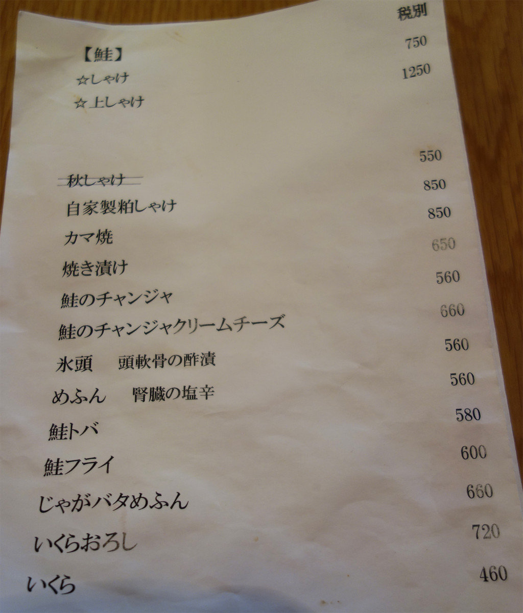 単品料理では、しゃけと上しゃけがあって、上しゃけは一本釣りのものだそうです。
