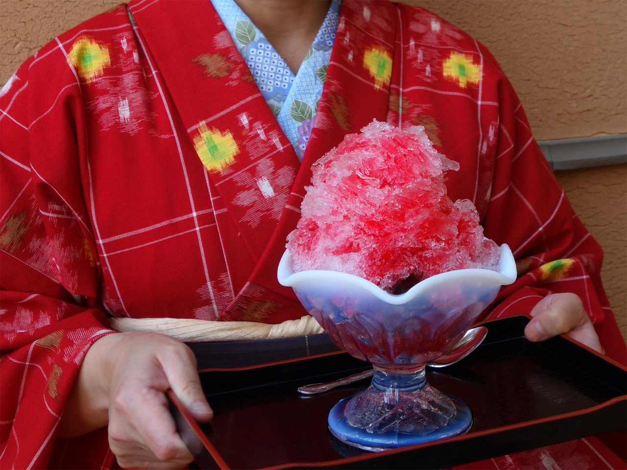 食後は、川端商店街に移動して、川端ぜんざい広場でかき氷を頂きました。