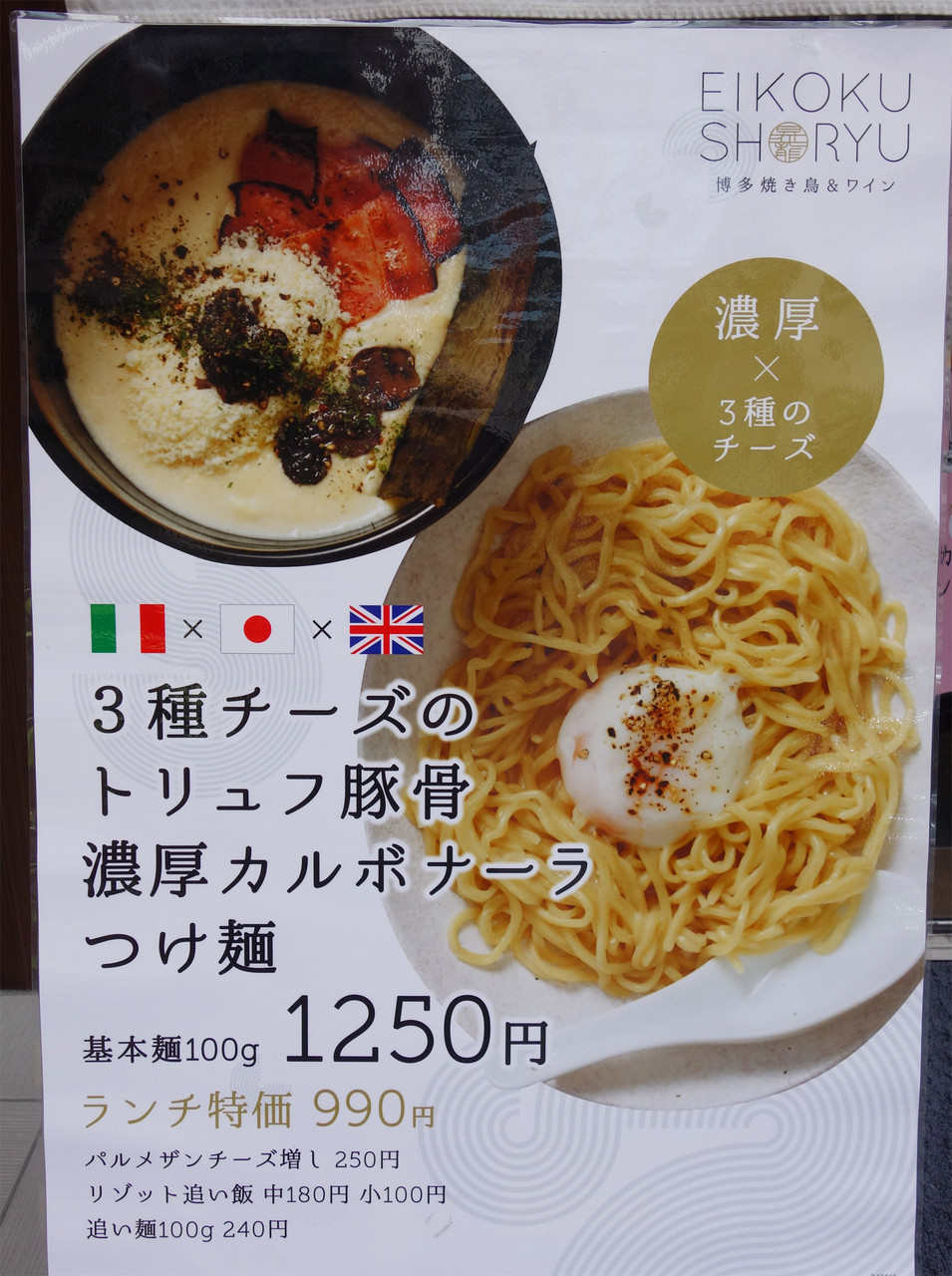 【福岡】トリュフ豚骨カルボナーラ&魚介豚骨スパイスカレー♪@英国昇龍