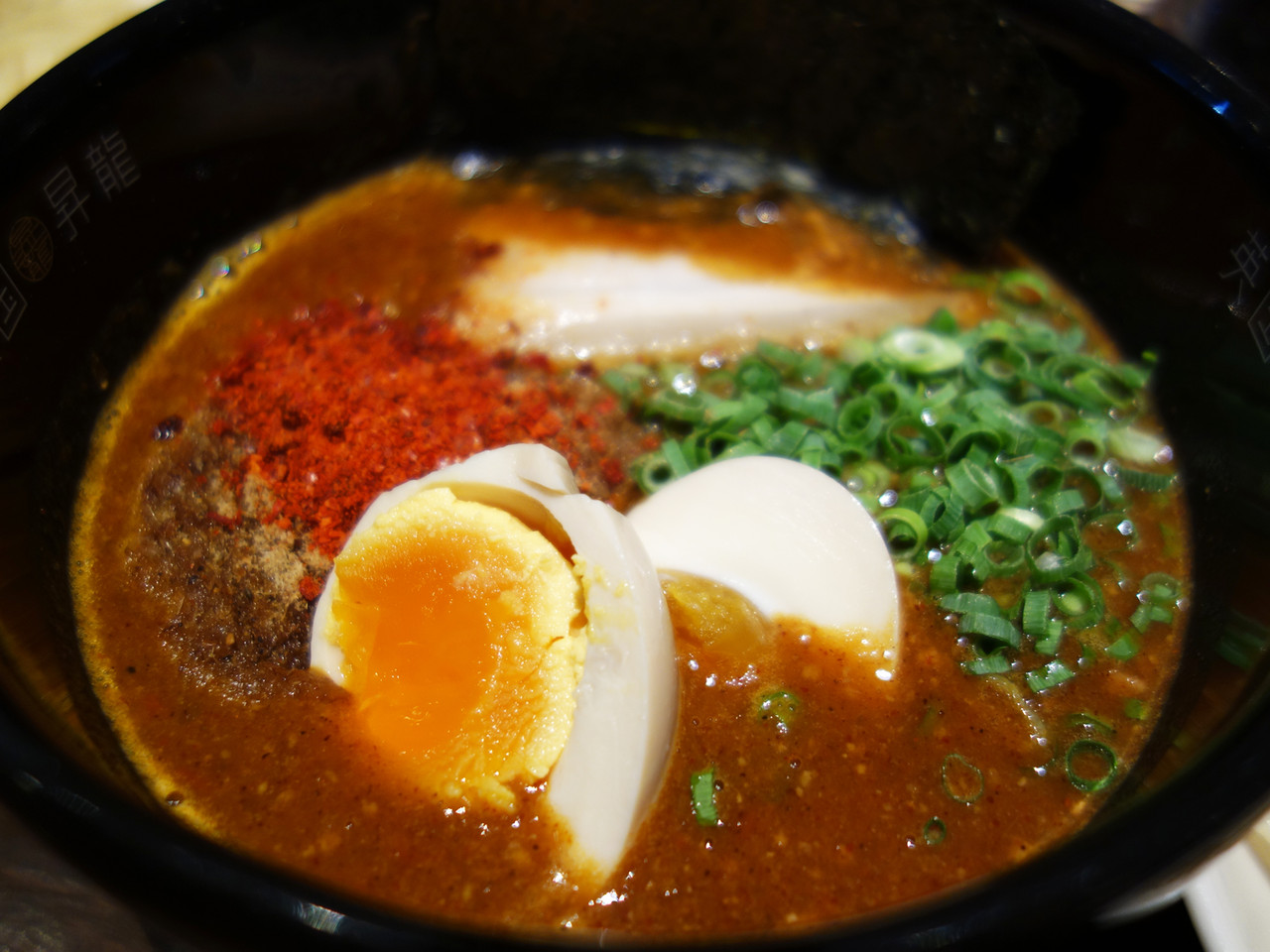 スープにはトリュフペーストがトッピングされており、麺には温泉玉子がトッピングされています。