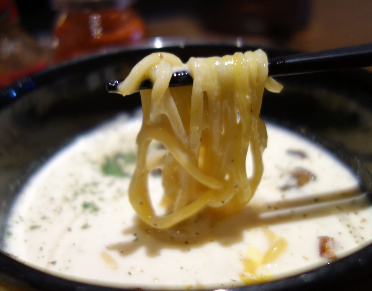 白くトロトロのスープは、豚骨ベースであるのを忘れてしまうほど洋風のクリームスープです。