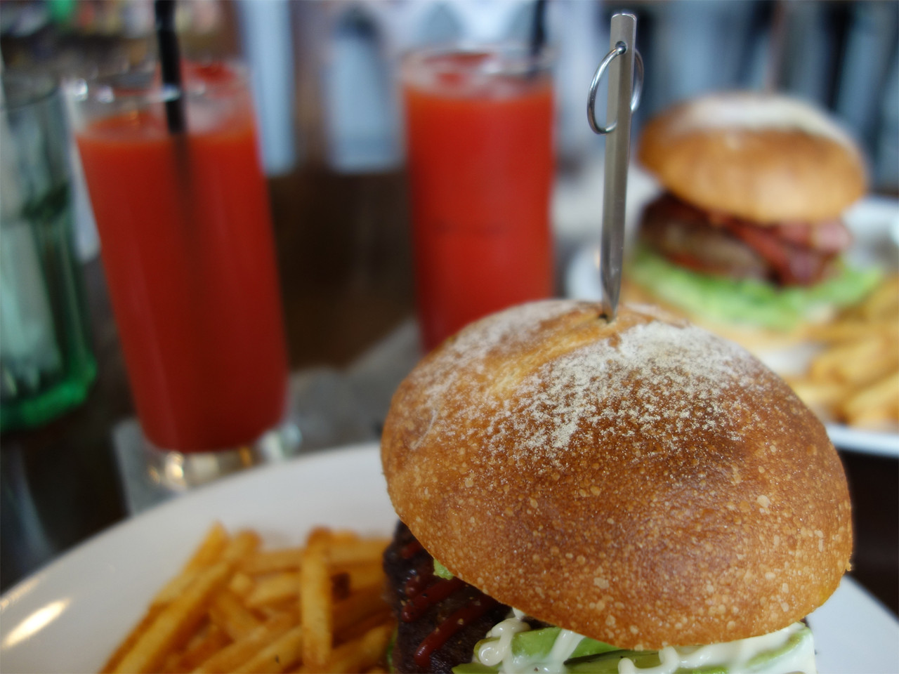 こちらのハンバーガーが珍しいのは、バンズがハード系のパンなんです。