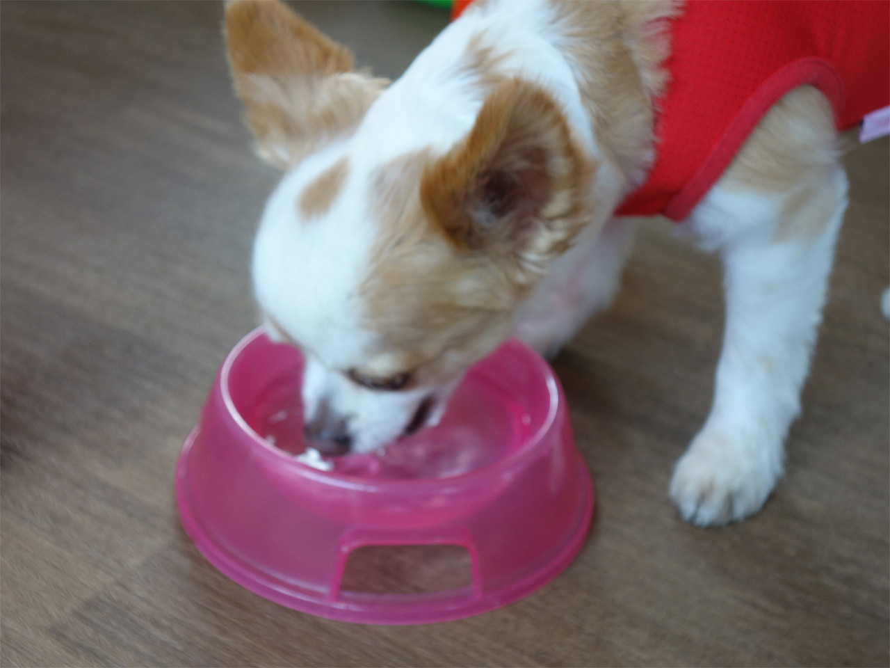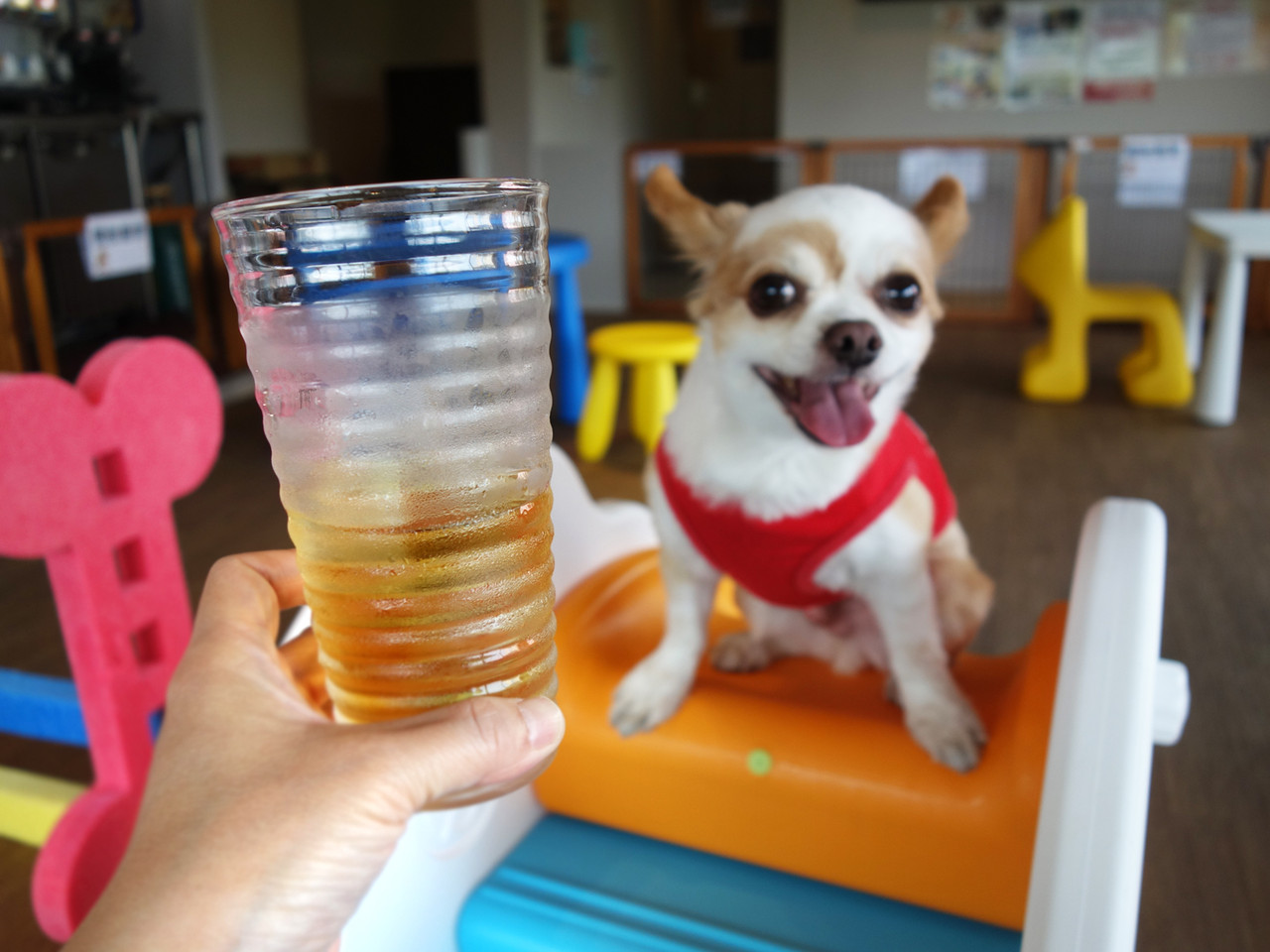 とりあえず、我々はめちゃくちゃ喉が渇いていたので、犬用のお水を頂きました。