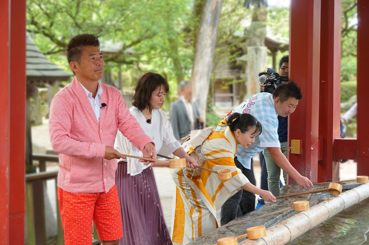 沢山の方々に楽しんで頂けますように、出演者の皆さん(勝俣州和さん・磯山さやかさん・フォーリンデブはっしーさん)と太宰府天満宮で祈願しました。