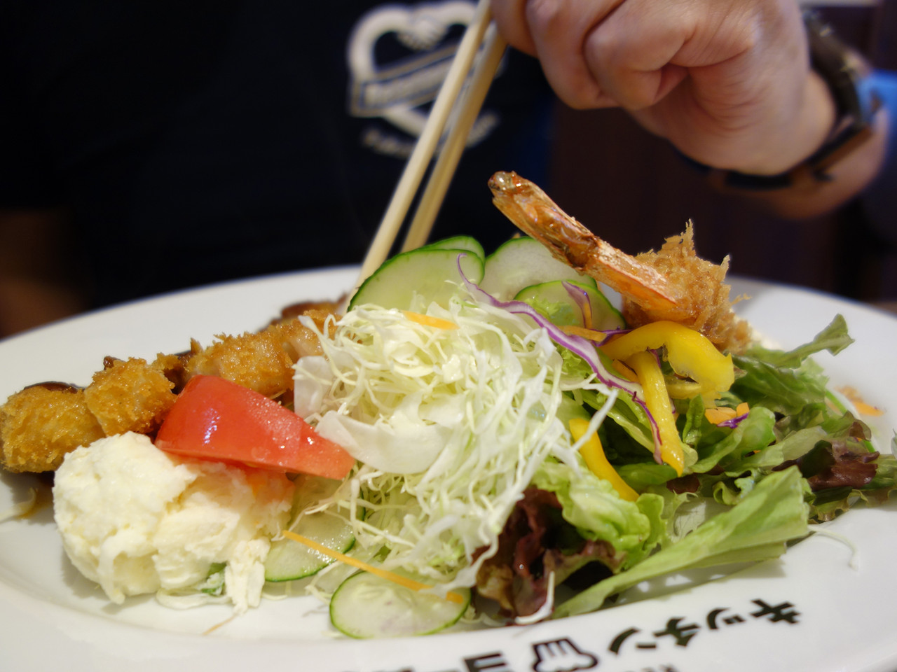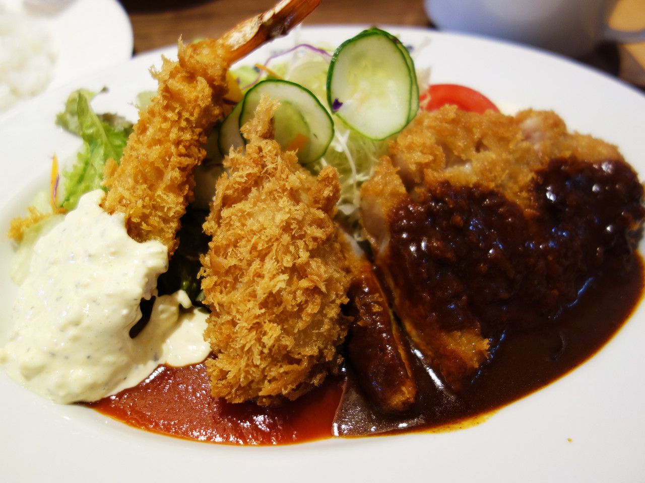 海老フライ・デミカツ・クリームコロッケの構成です。