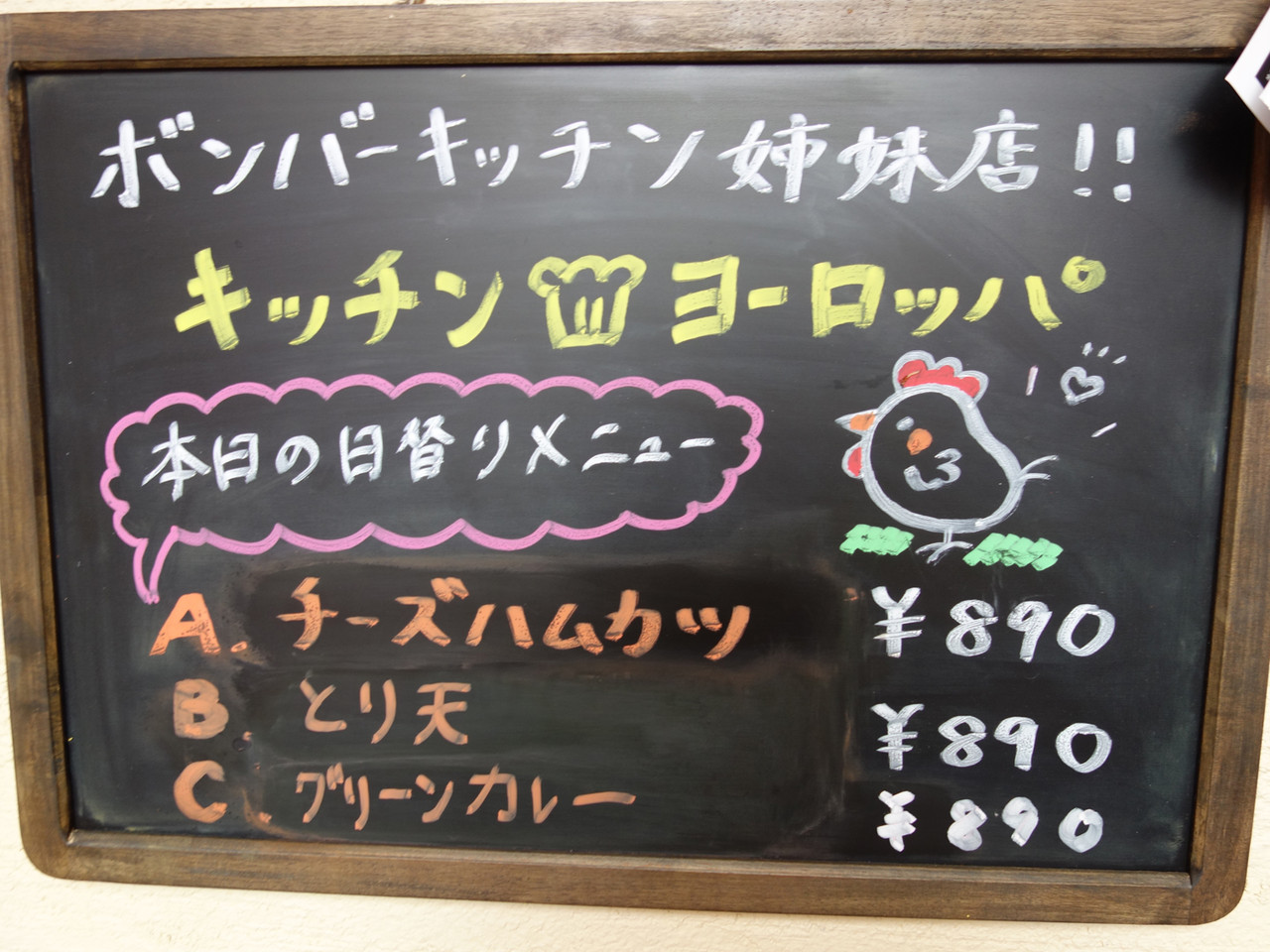 この日は、とり天・グリーンカレー・チーズハムカツでした。