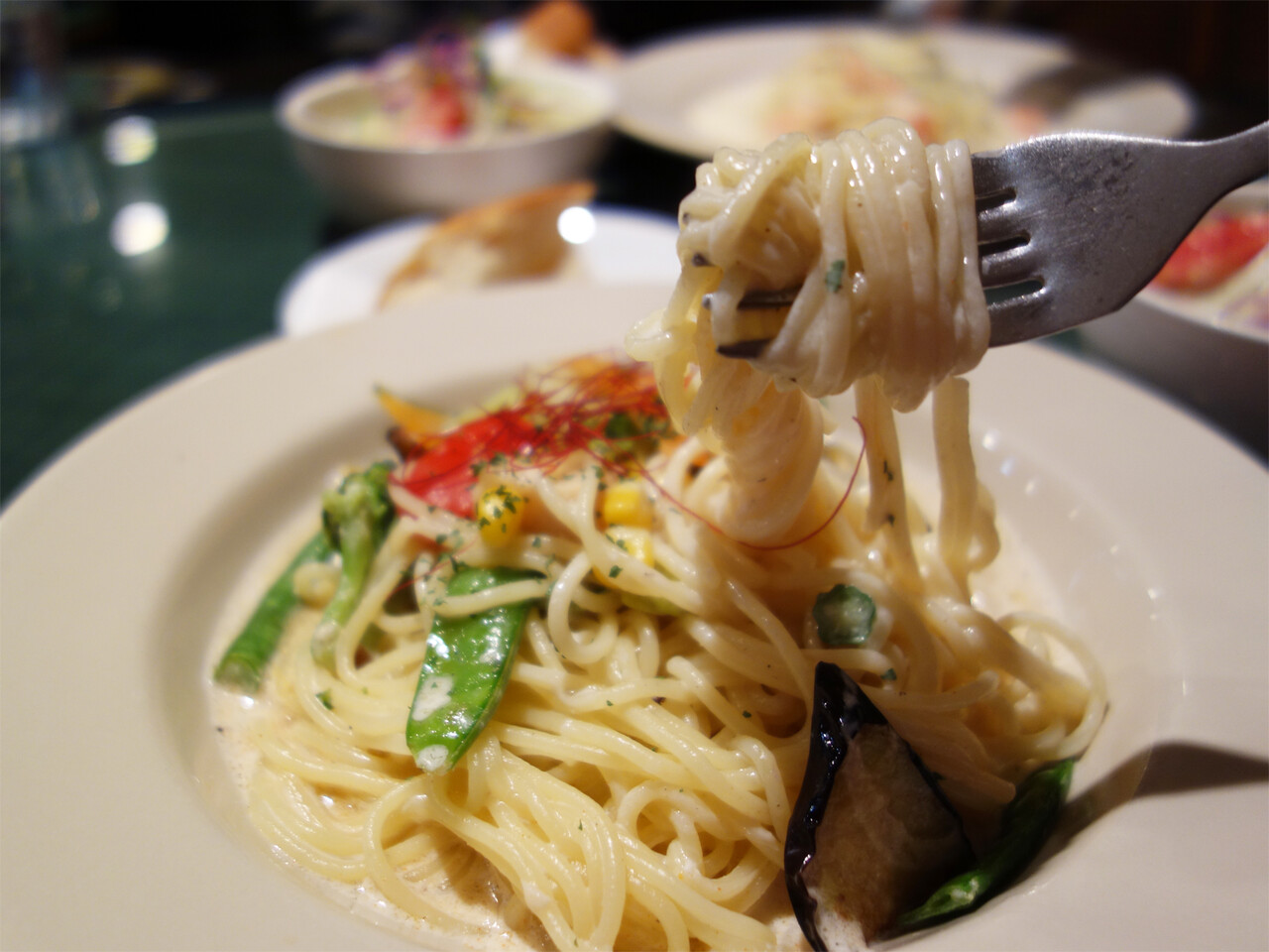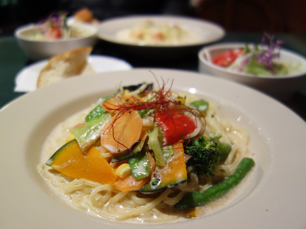 私は、この店の看板メニューという『季節野菜のクリームパスタ』にしました。