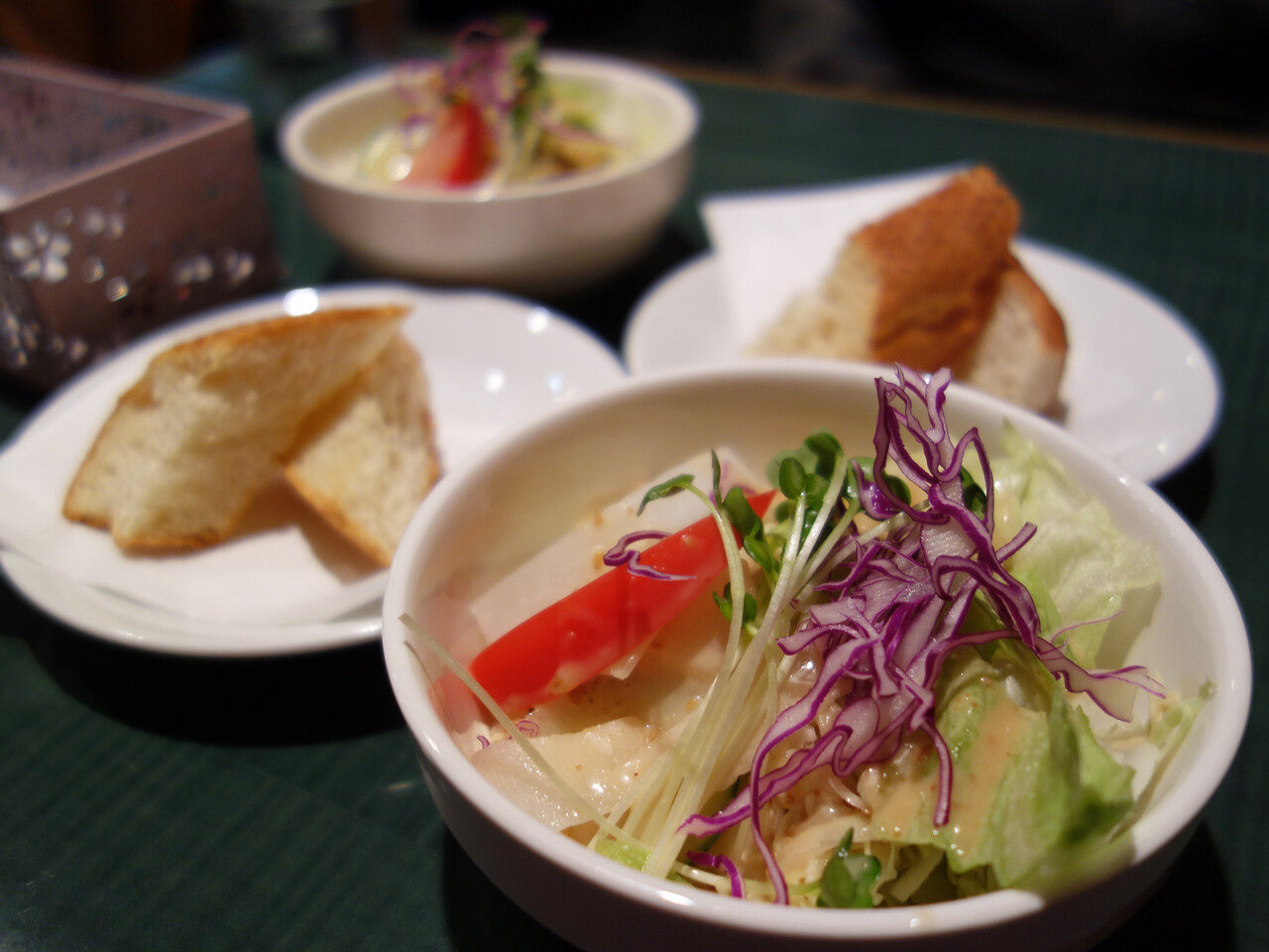 セットのパンとサラダです。