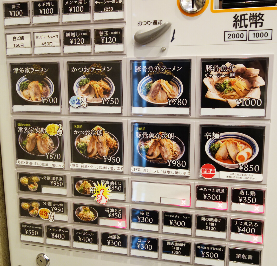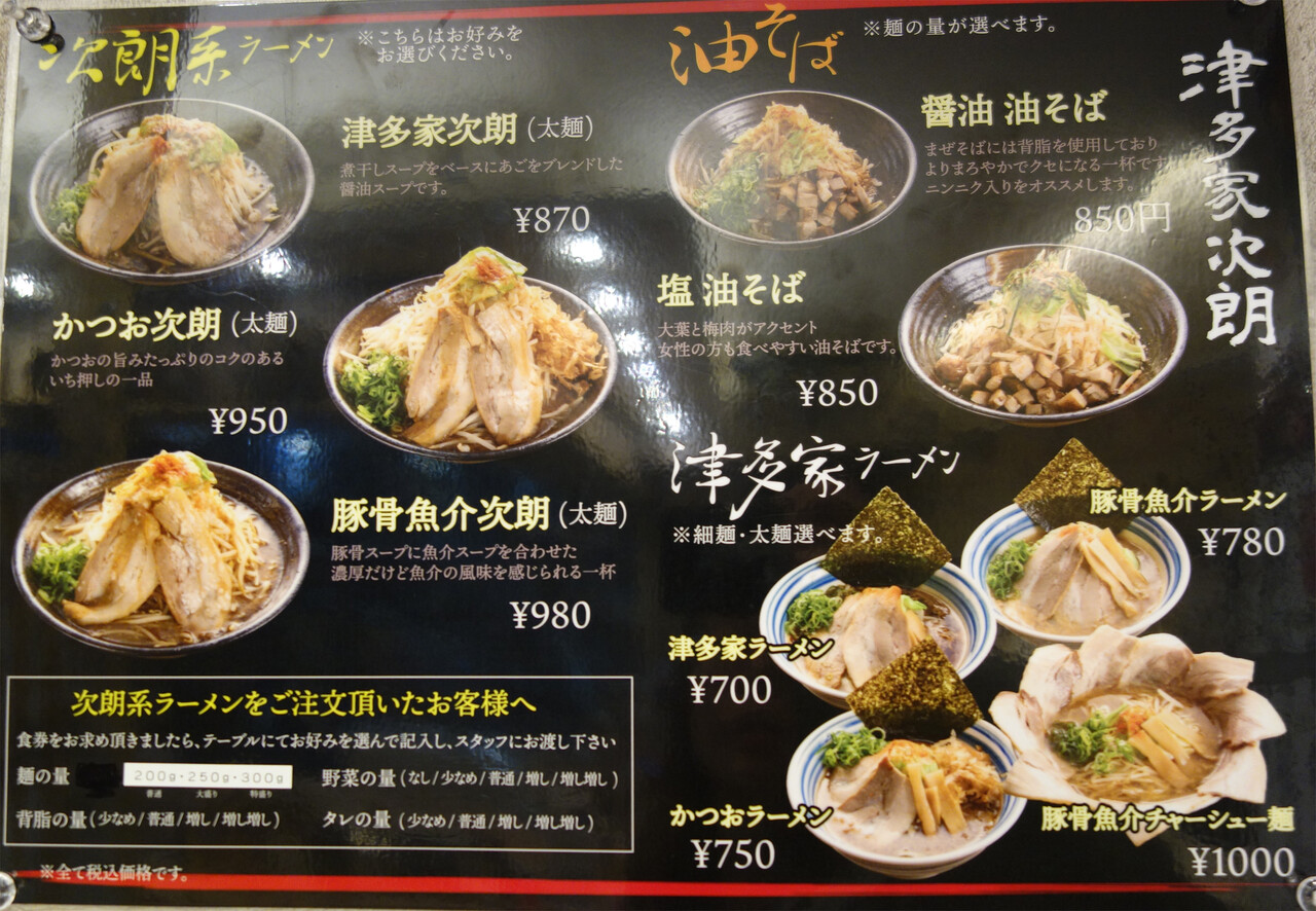 魚介スープの津多家次朗・魚介豚骨のかつお次朗があります。