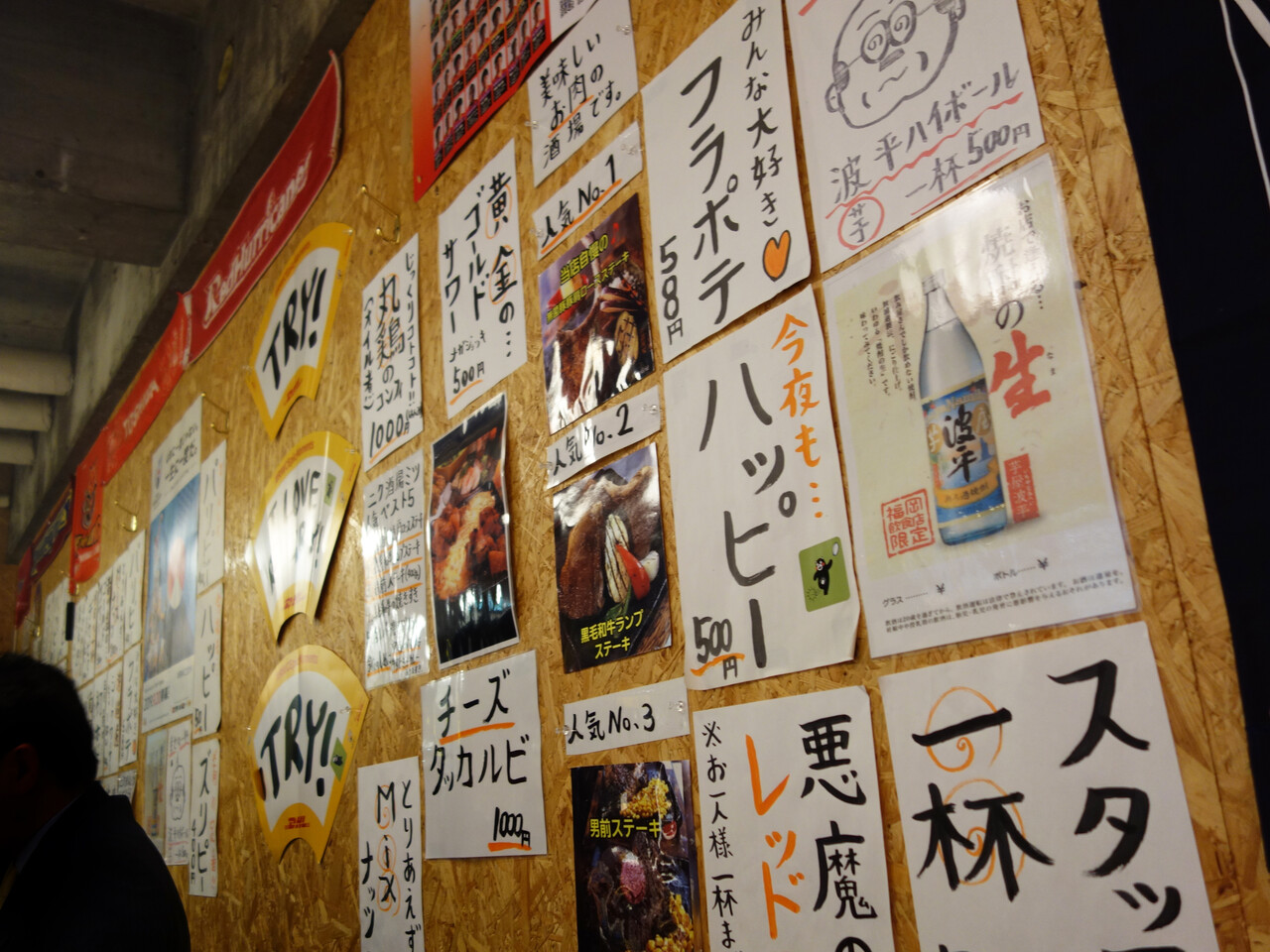 グランドメニューや日替わりメニューの他に、壁面にも色々貼ってあります。