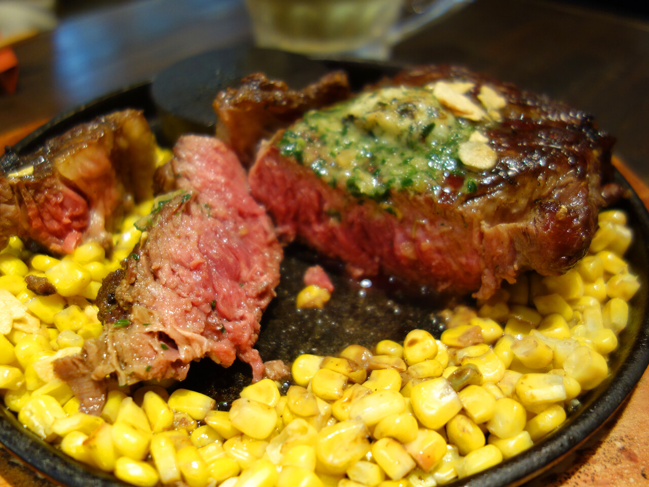 男前ステーキをずっとモグモグしていて、後で写真を見たらあまり食べてませんでしたので、