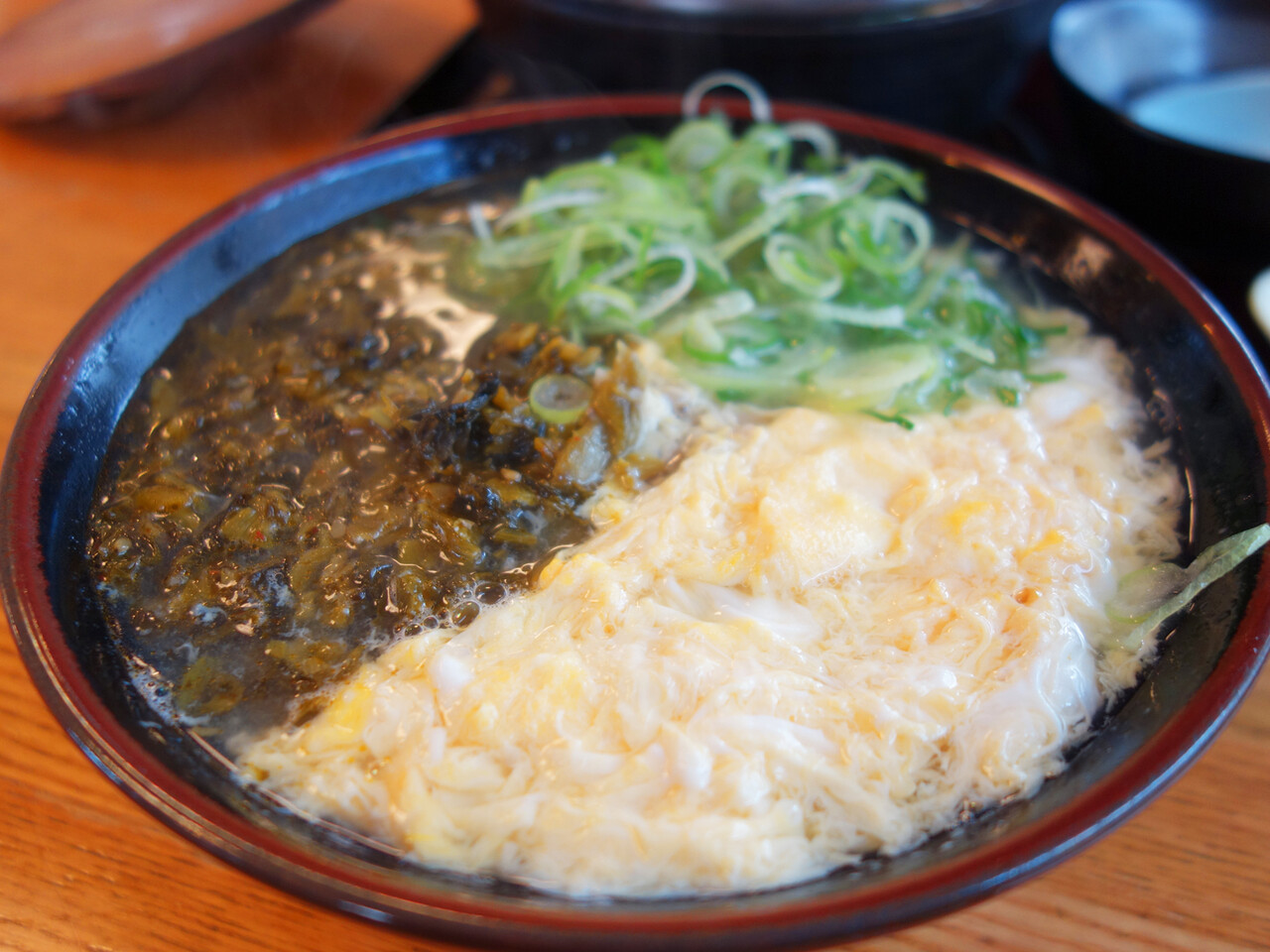 今回は、辛子タカナそば420円+卵とじ120円を頂きました。