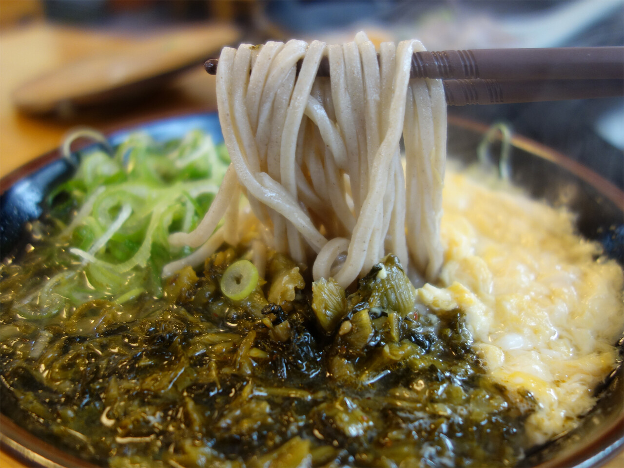 蕎麦自体は想定内ですが、辛子高菜の辛味と古漬け独特の風味が出汁に合い、美味しかったです。