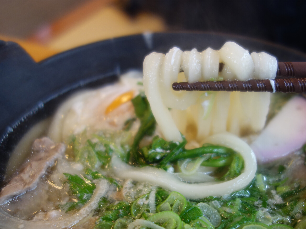 うどんは、博多うどんのようなヤワではなく、意外にカタ。