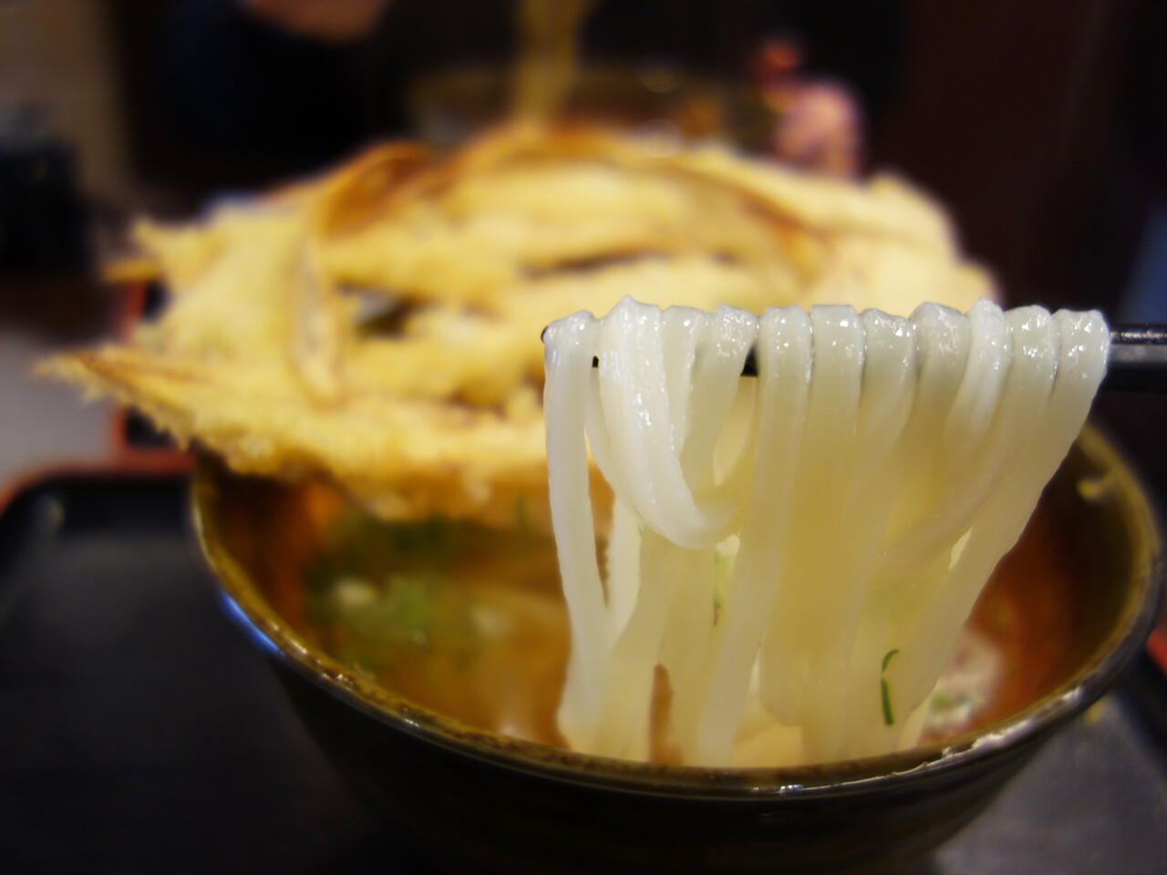 見た目のインパクトだけでなく、上品なおつゆとモチヤワプリンなうどん麺で、