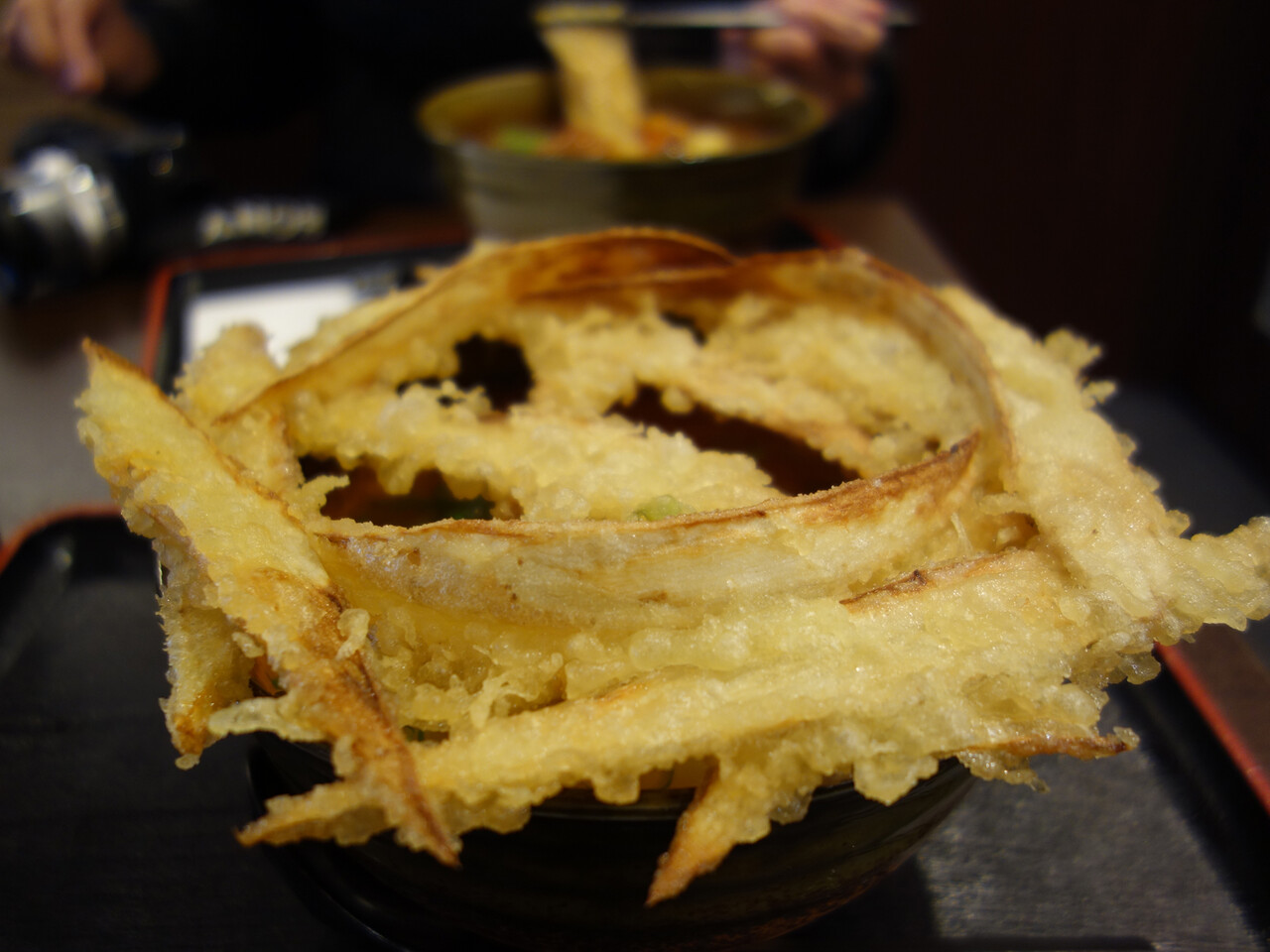 丼にフタをするかのようにのせられた大きなごぼう天が印象的!