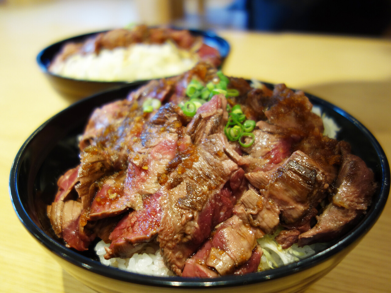 ご飯は通常で大盛位入っているので、お肉100gのステーキ丼でも十分ボリュームがあると思います。