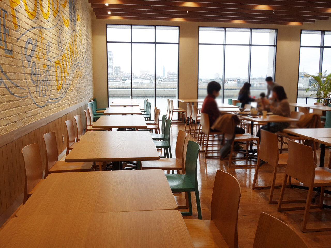 海と福岡タワーを望む窓際のテーブル席をとりあえずもんちして、レジカウンターで注文します。