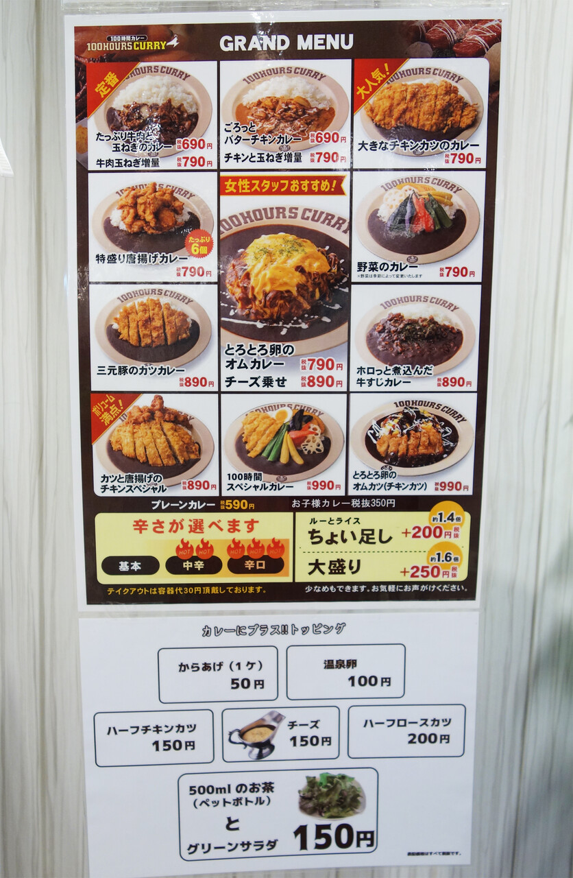 定番の『たっぷり牛肉と玉ねぎのカレー』は690円、その他はトッピングによって790円・890円・990円という価格帯になっています。※税別
