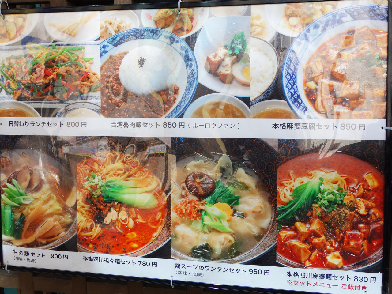 日替わりランチ800円・台湾魯肉飯(ルーローファン)セット800円・本格麻婆豆腐セット850円