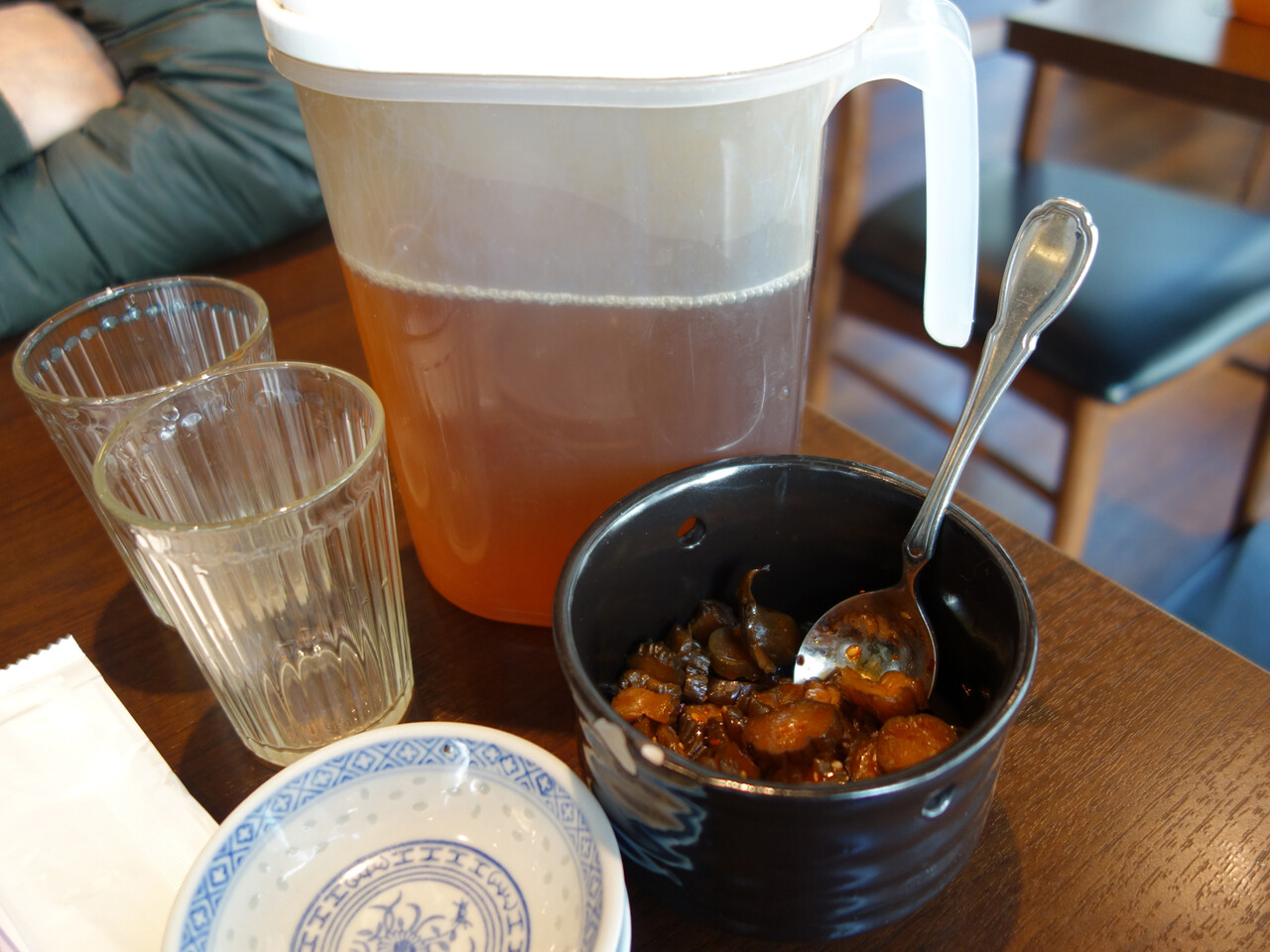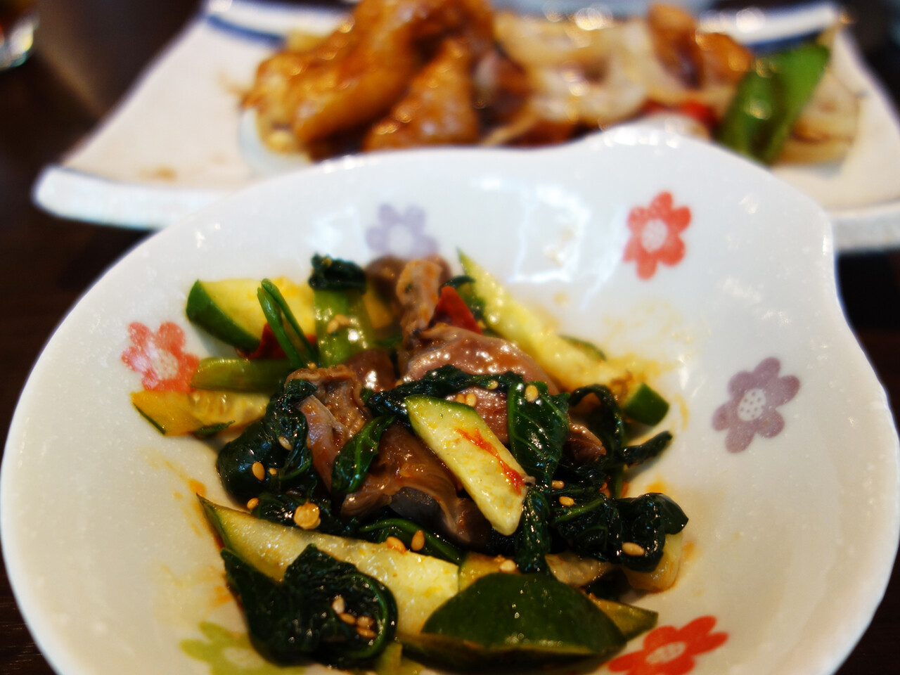 メイン料理は辛くなかったけど、副菜の砂ズリとキュウリの和え物が辛かったです。