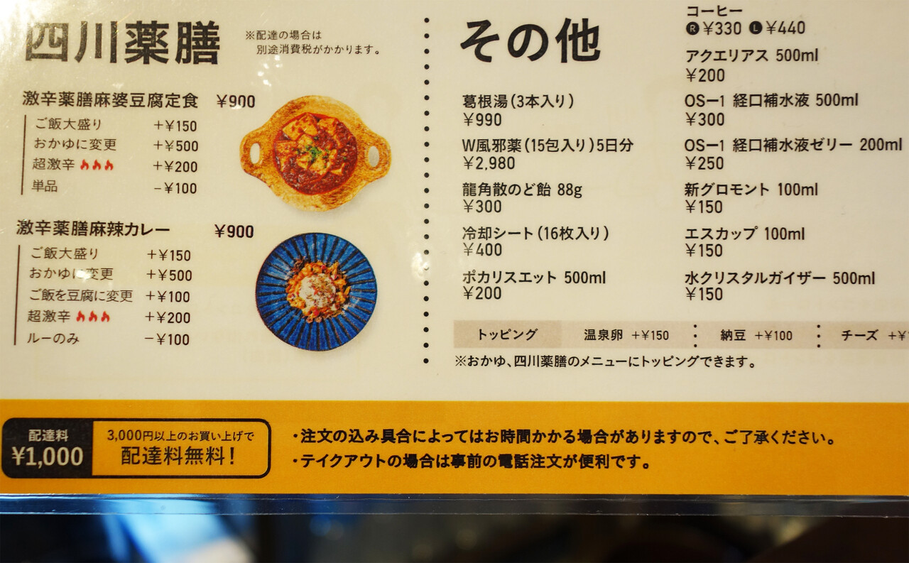 お粥以外には、薬膳麻婆豆腐と薬膳麻辣カレーがあります。
