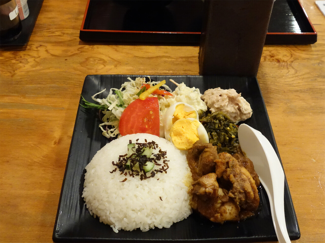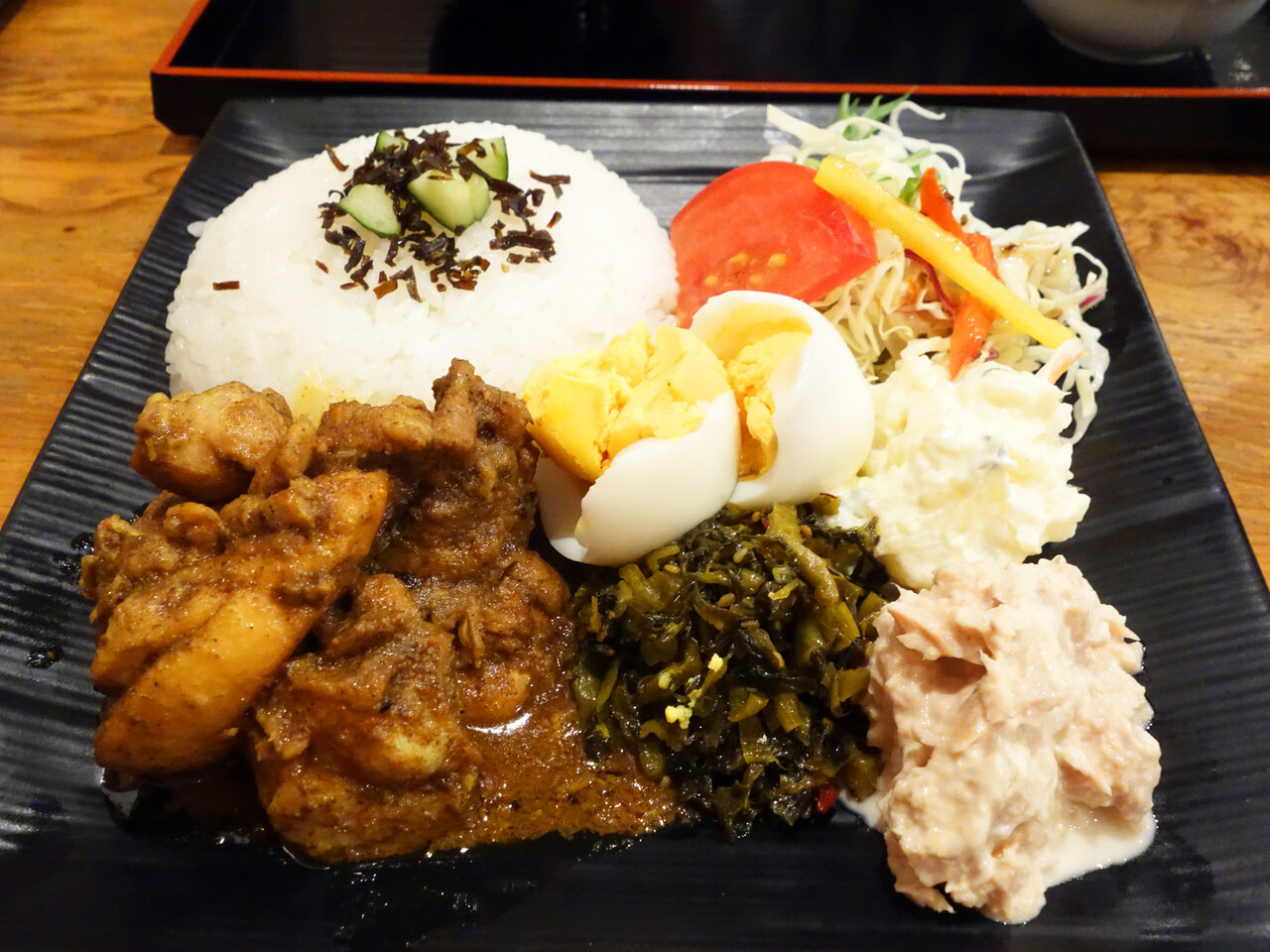 スリランカ料理専門店のごちゃ盛りスタイルとも違う、カレーのワンプレートって感じですね。