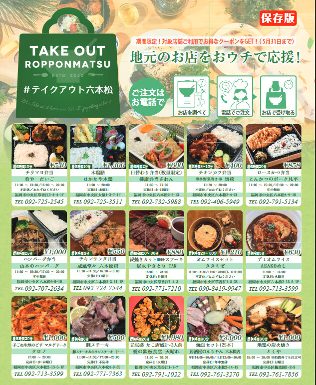 お店は、六本松商店連合会による地元密着テイクアウト支援専門サイト『テイクアウト六本松』にも掲載されています。