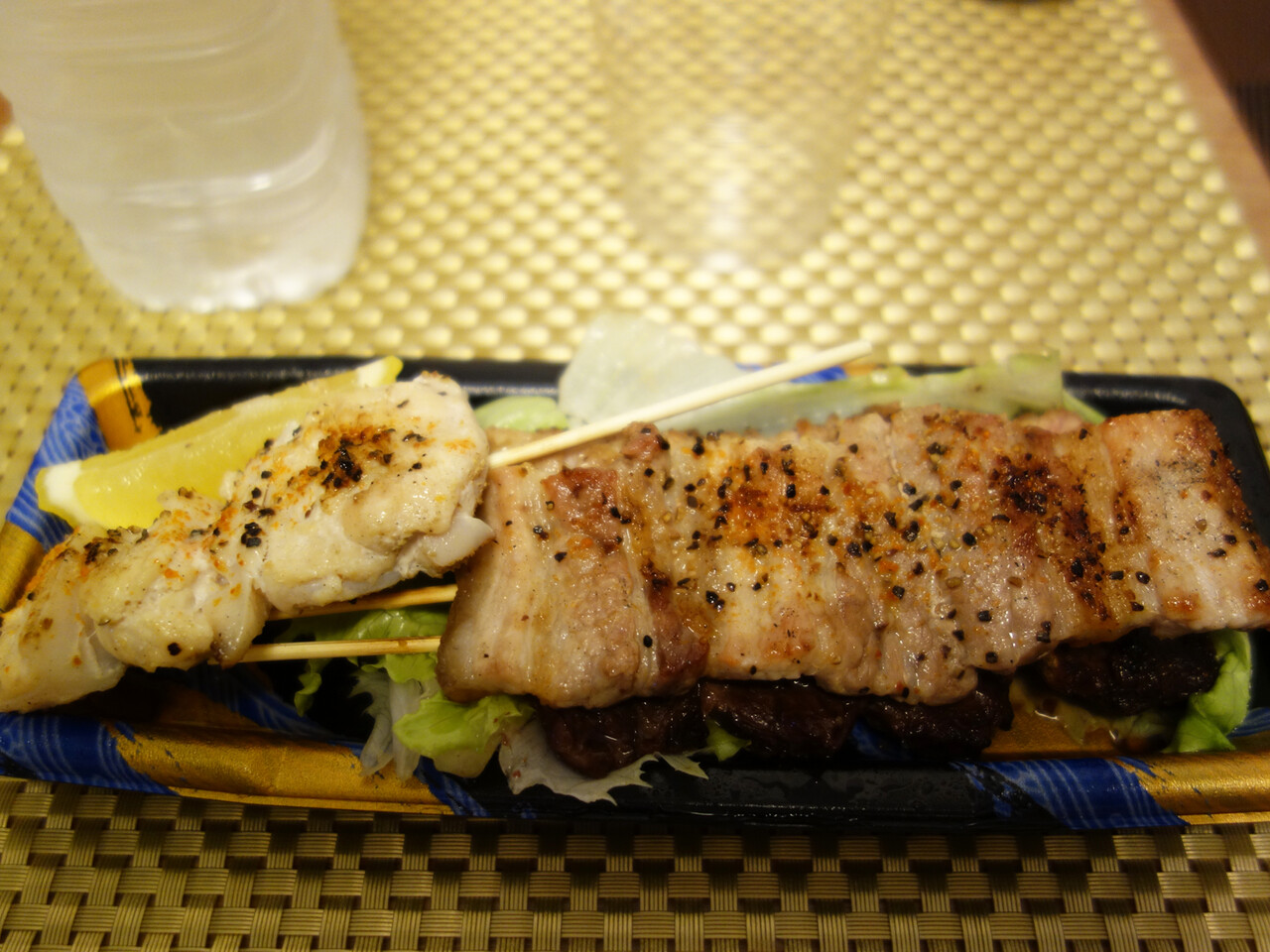 串焼盛には、豚バラと鶏が計3本入っていました。