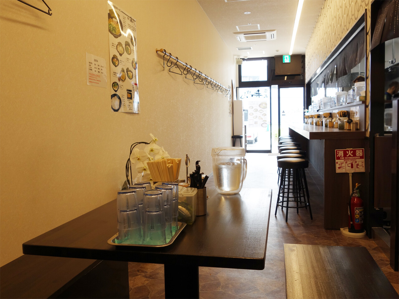 店内の通路は広く、カウンター席の他にゆったり座れるテーブル席もあります。