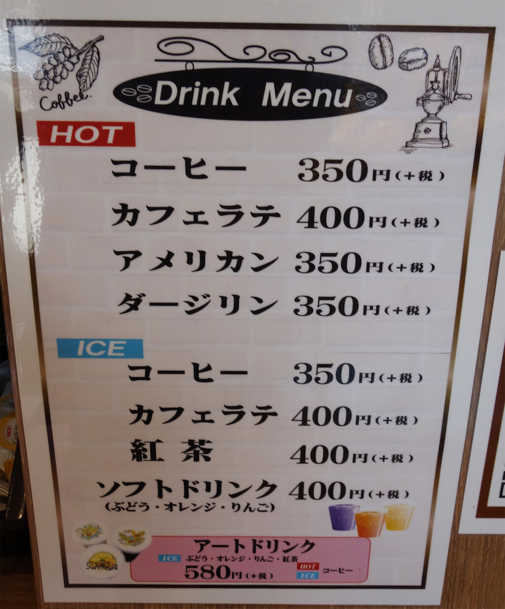 ドリンク類は、コーヒーとアイスコーヒー各350円を頂きました。