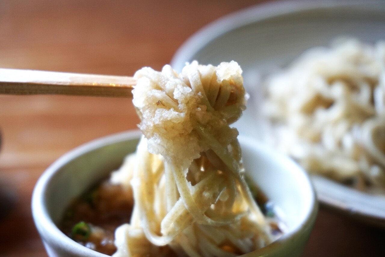 おつゆにガッツリ投入し、職人さんが、風味・香り・食感にこだわった八割そばを