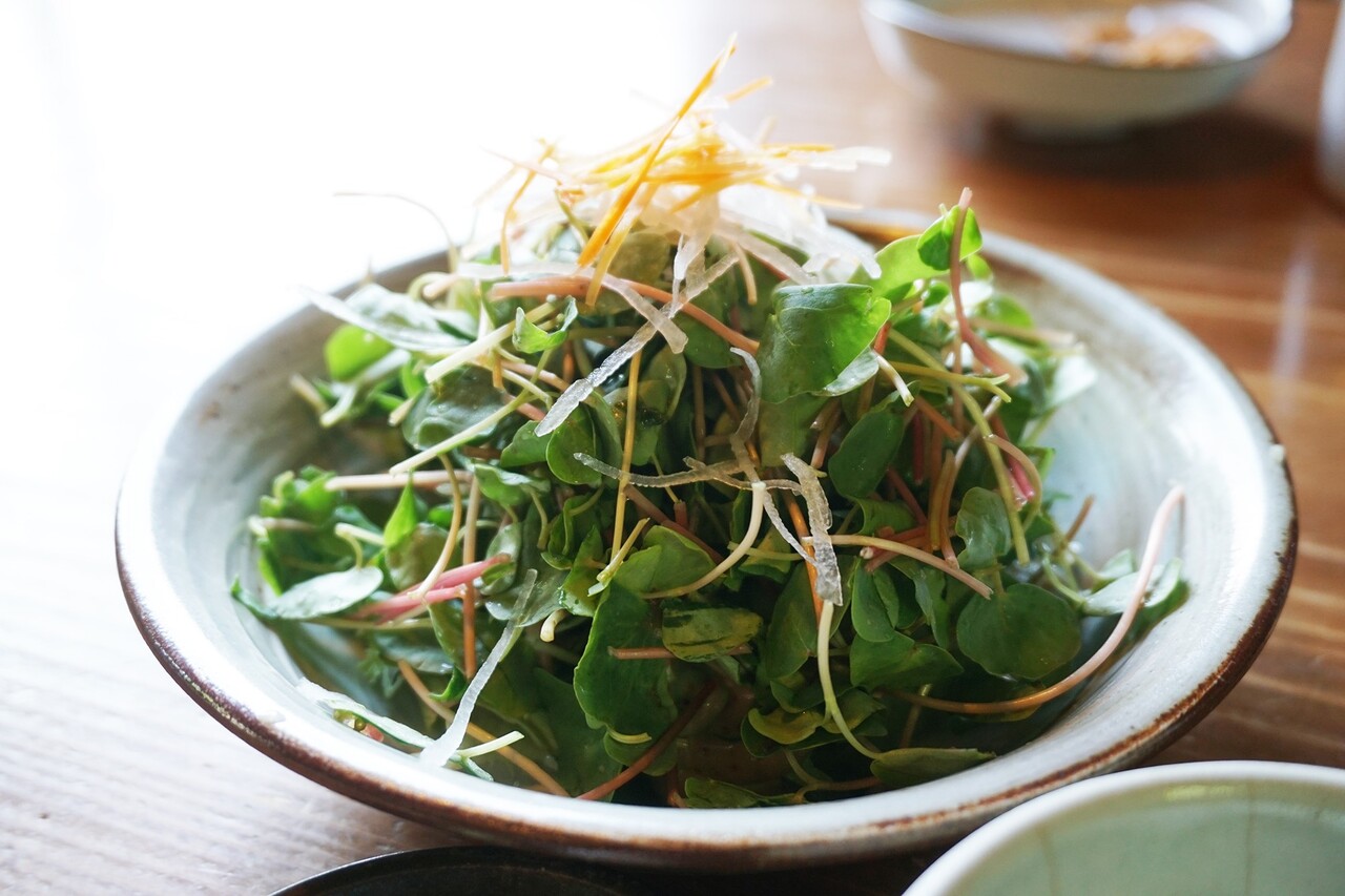 店主の息子さんが営む『友田農園』で栽培されている蕎麦の芽だそうです。