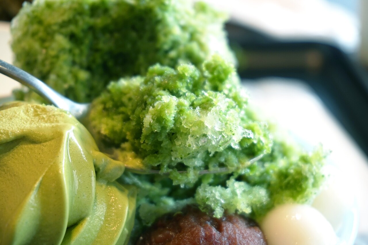 蜜がたっぷりの宇治抹茶には、白玉・あんこ・抹茶ソフトが搭載。
