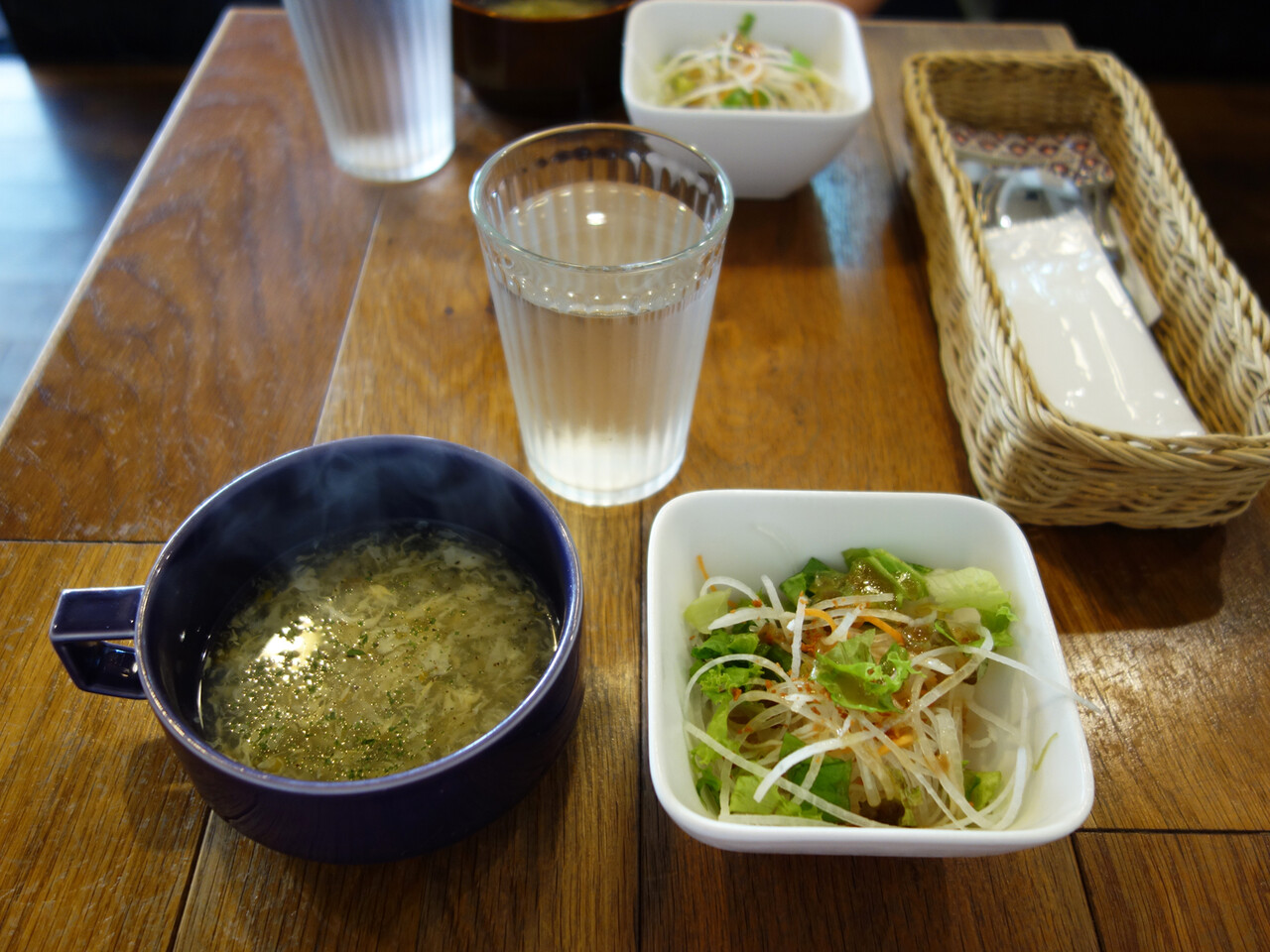 パスタとサンドイッチに付いているスープとサラダはこんな感じです。