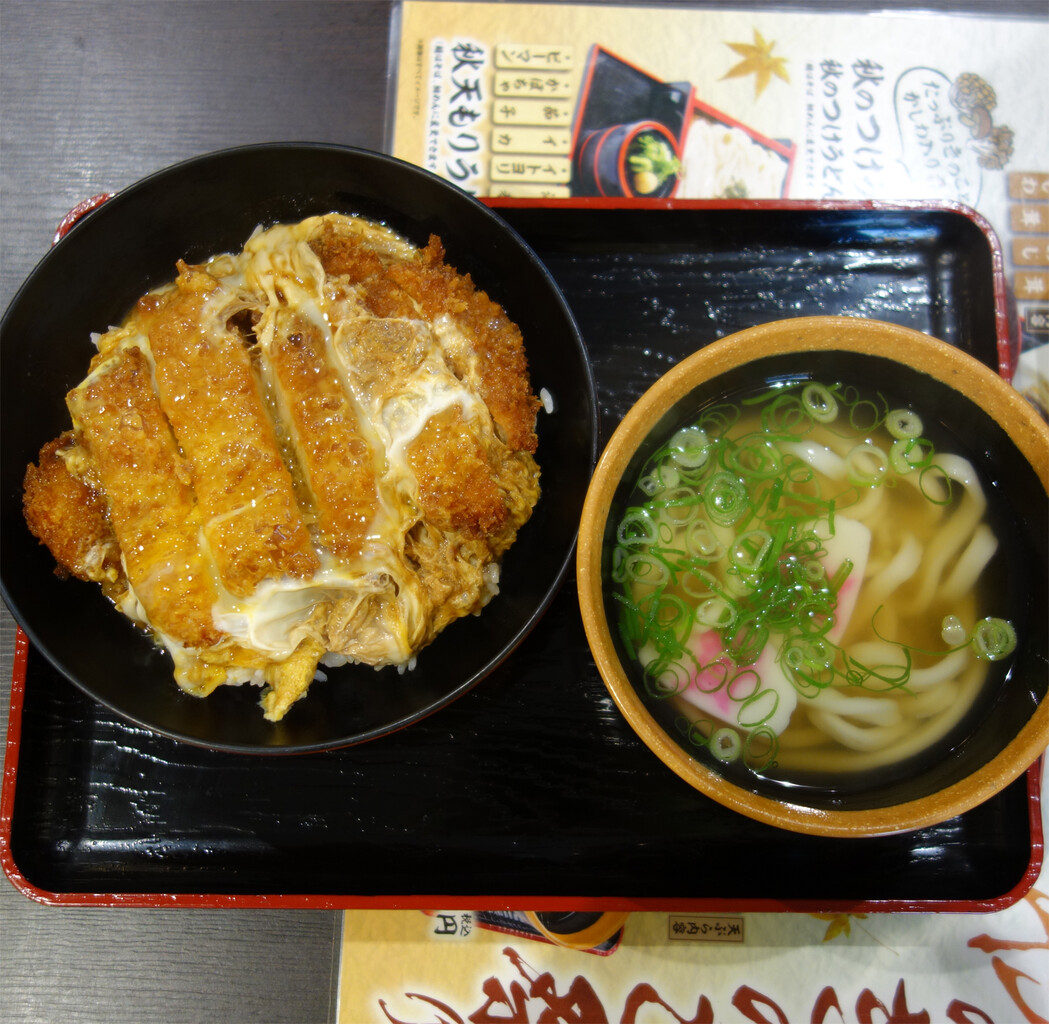 丼ものメニューから人気ナンバーワンという『カツとじ丼』ミニうどんセット850円を頂きました。
