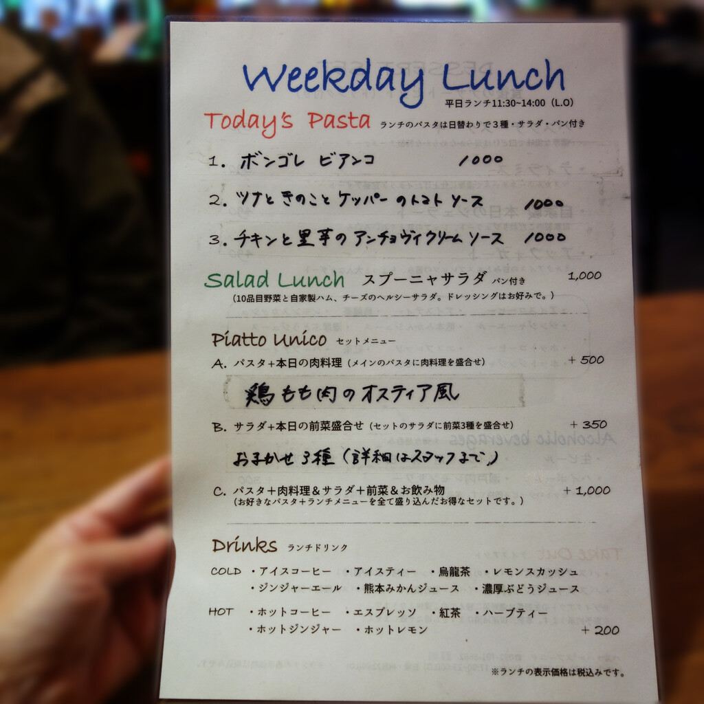 パスタランチは、定番のパスタ2種類と日替わりパスタが3種類。