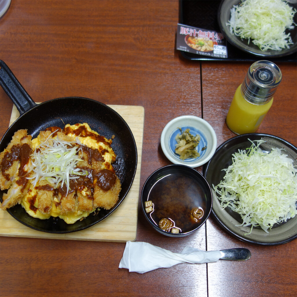 こちらのカツ丼は『かつ玉丼』と呼ばれ、玉子でとじていないのが特徴です。